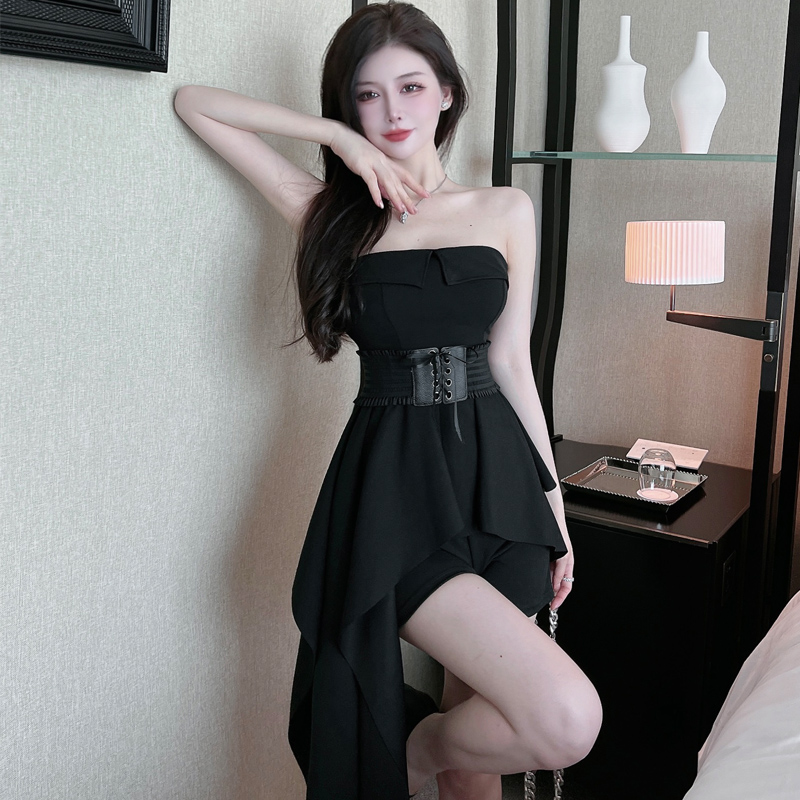 BY10623# 辣妹纯欲套装女修身封腰不规则抹胸上衣内搭打底裤三件套 服裝批發女裝批發服飾貨源