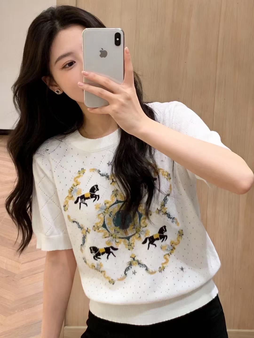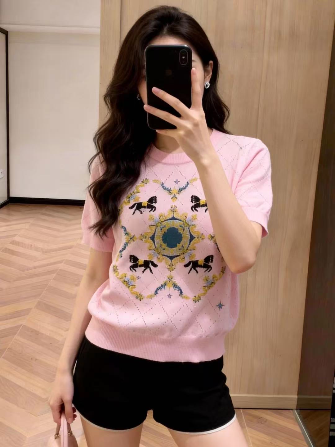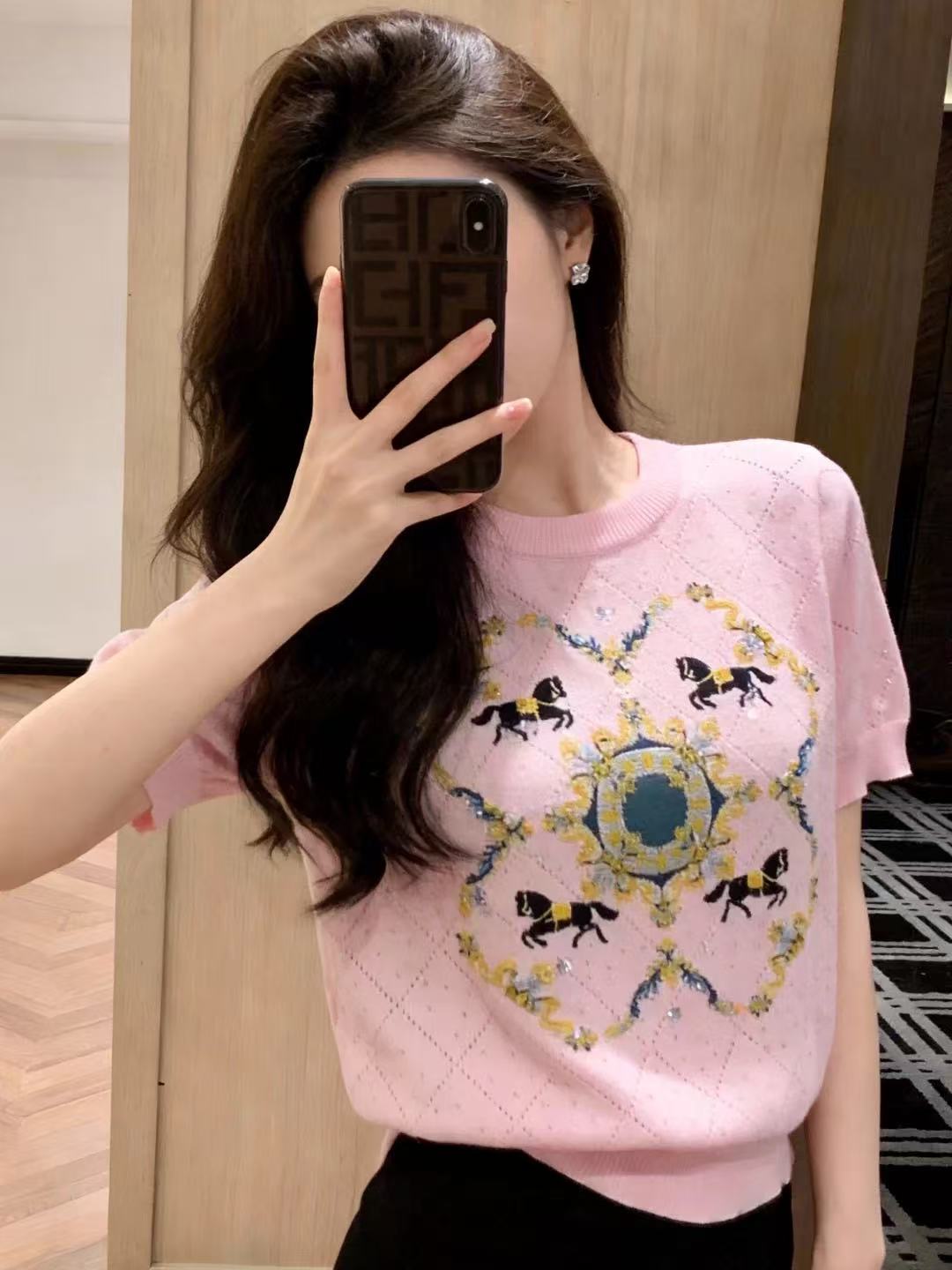 新款慵懒高级感针织毛衣短款圆领设计设计感针织衫短袖 服裝批發女裝批發服飾貨源