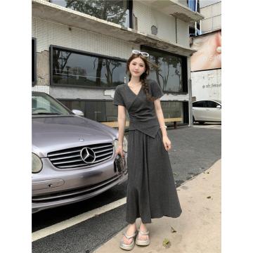 BY11481# 大码女装夏季新款修身显瘦遮肉休闲短袖上衣+半身裙套装 服裝批發女裝批發服飾貨源