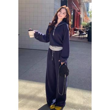BY11611# 春秋季新款休闲三件套海军外套T恤运动筒裤套装长裤多巴胺 服裝批發女裝批發服飾貨源