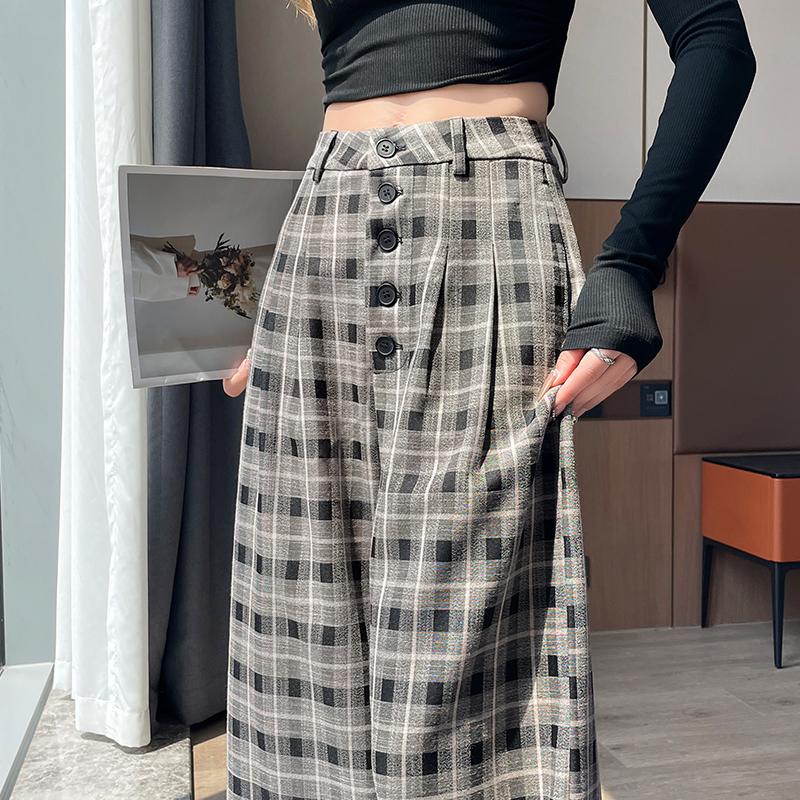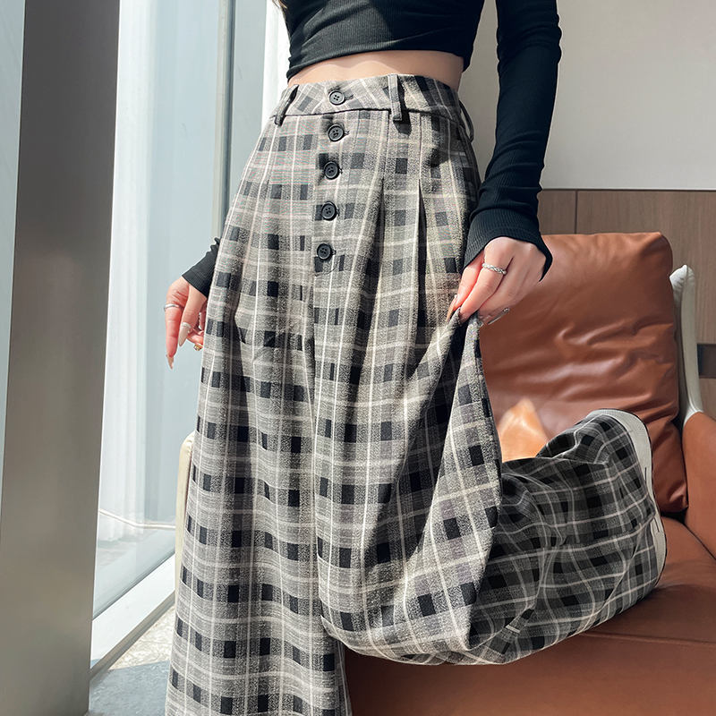 FA41969# 秋冬新款复古格子阔腿裤女韩系休闲裤宽松慵懒显瘦格纹拖地裤子 服裝批發女裝批發服飾貨源