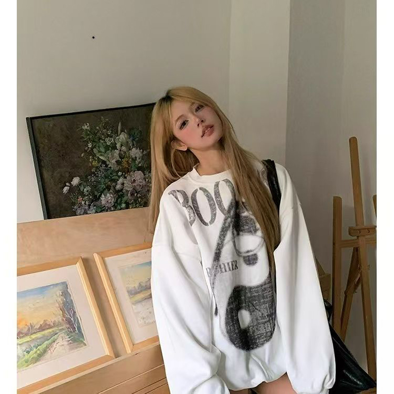 Home > 卫衣 > YF6016# 图片色原宿风圆领长袖字母印花宽松胖MM显瘦学院风休闲卫衣