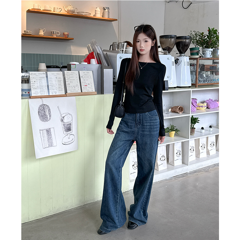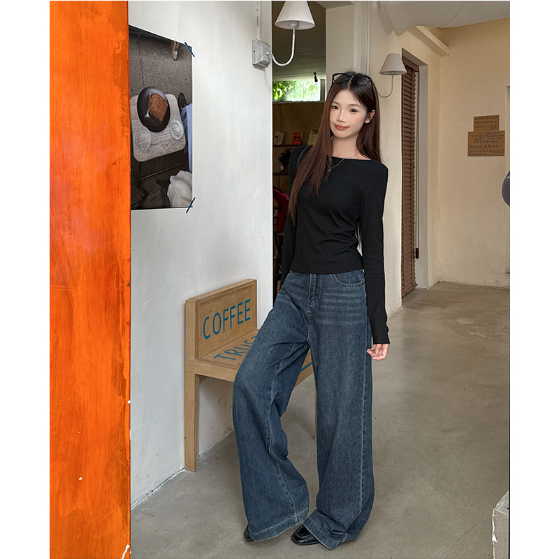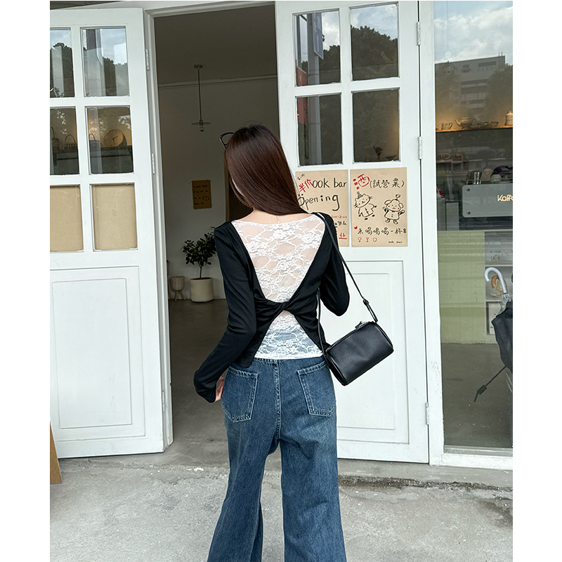 FA44847# 黑色后背蕾丝花边假两件恤女秋冬设计感修身内搭打底衫 服裝批發女裝批發服飾貨源