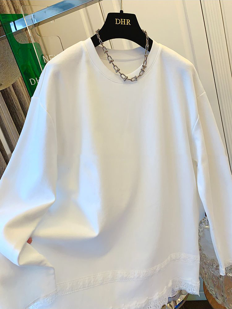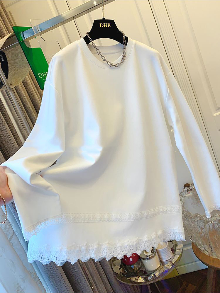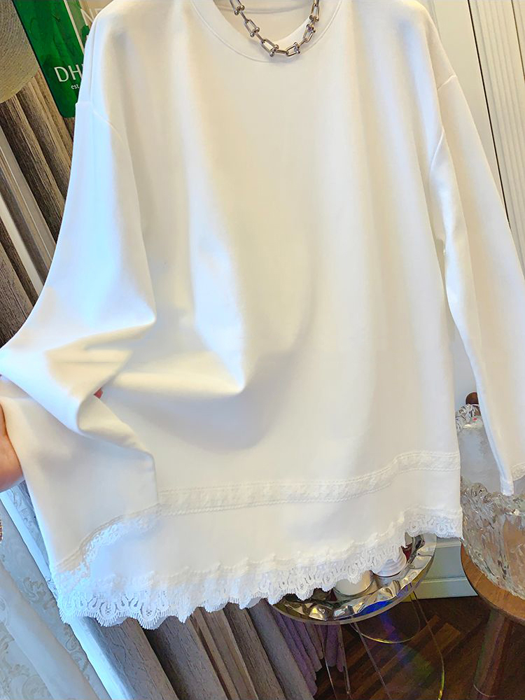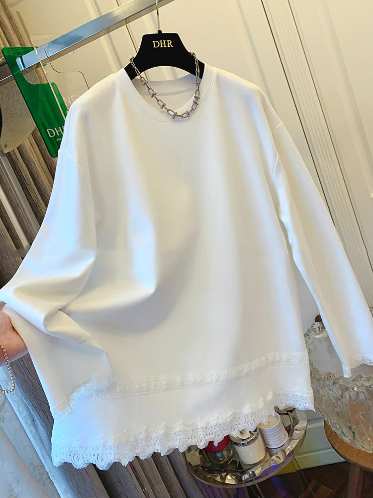 FA44852# 加绒白色花边蕾丝打底衫女内搭外穿大码磨毛宽松长袖t恤上衣潮 服裝批發女裝批發服飾貨源