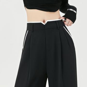 FA45004# 秋季新款阔腿裤女拼接撞色设计感宽松休闲长裤子小个子 服裝批發女裝批發服飾貨源
