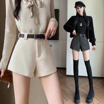 FA45181# 毛呢短裤女秋冬款高腰通勤百搭a字阔腿裤靴裤 服裝批發女裝批發服飾貨源