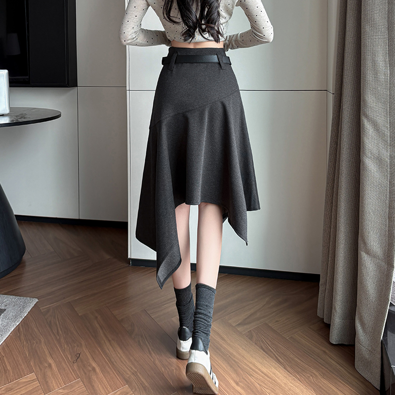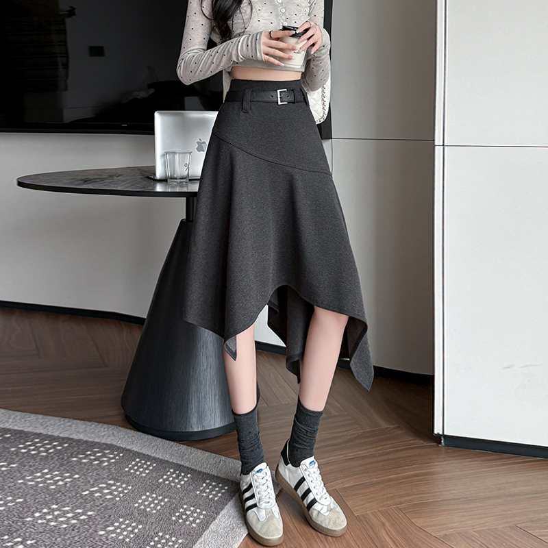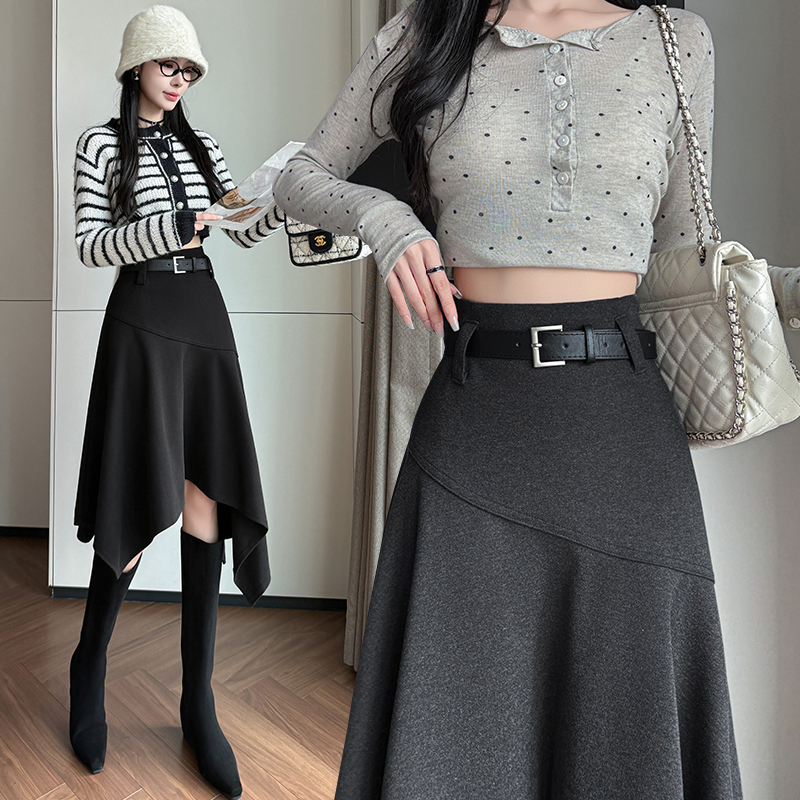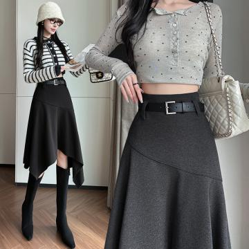 FA45182# 不规则高腰毛呢半身裙女秋冬款百搭显瘦中长裙 服裝批發女裝批發服飾貨源
