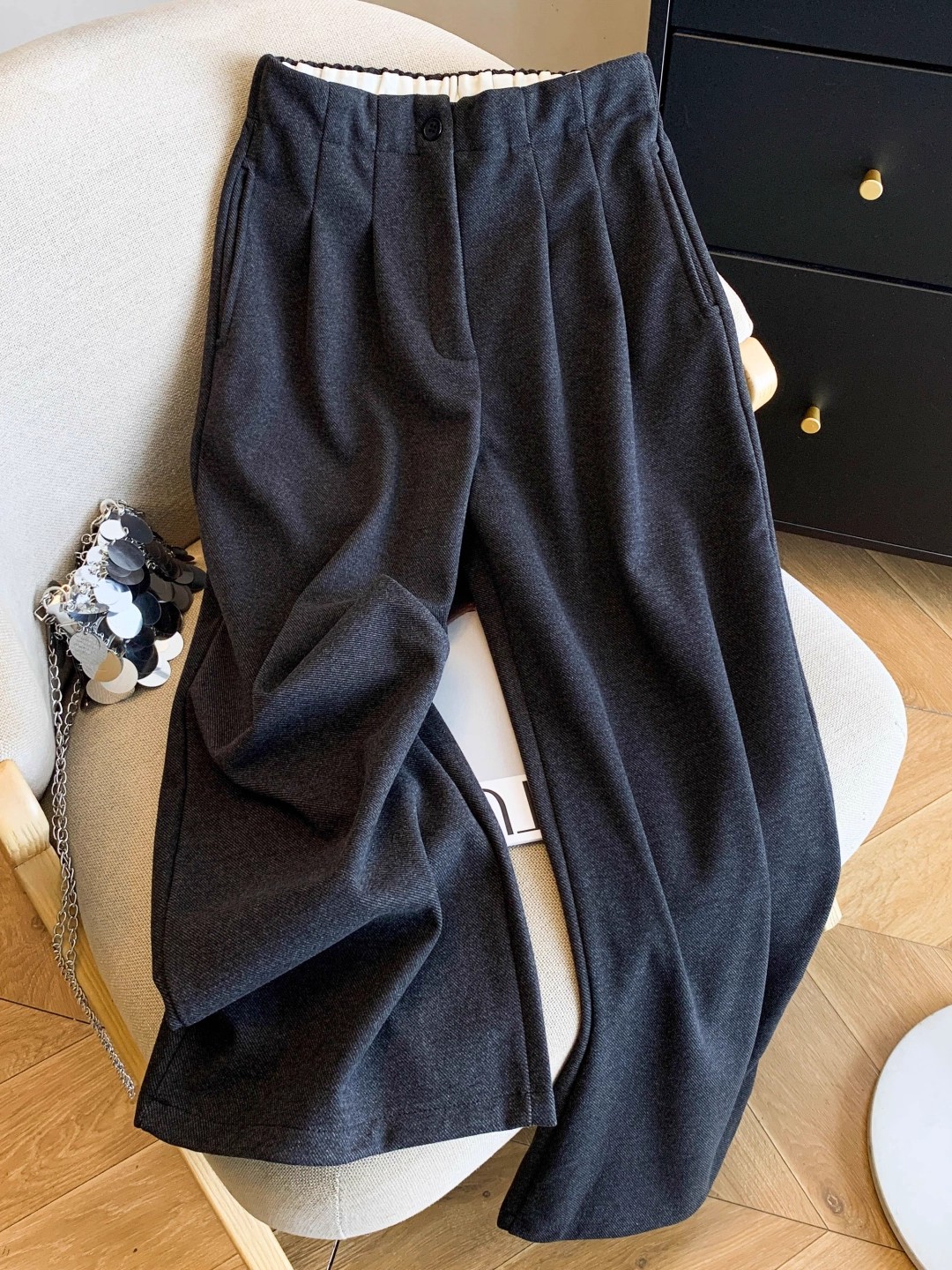 FA45288# 毛呢阔腿裤女秋冬新款慵懒风厚款山本阔腿长裤子女冬外穿 服裝批發女裝批發服飾貨源