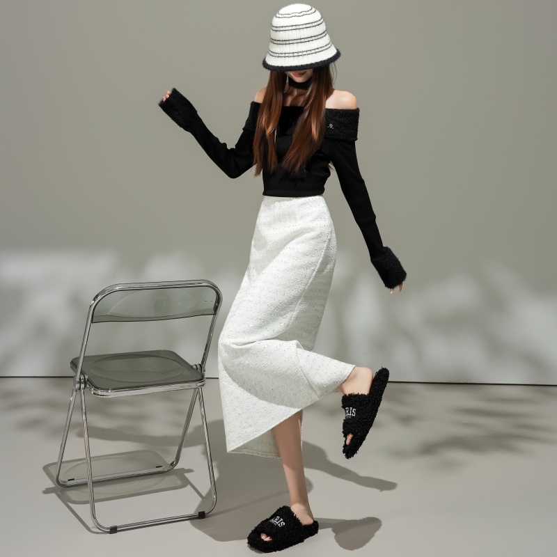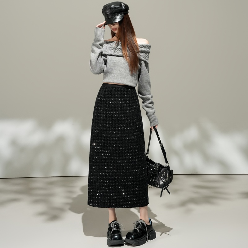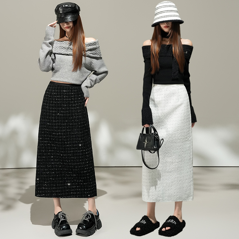 FA45344# 秋冬小香风亮片开叉半身裙女新款高腰显瘦A字直筒包臀中长裙 服裝批發女裝批發服飾貨源