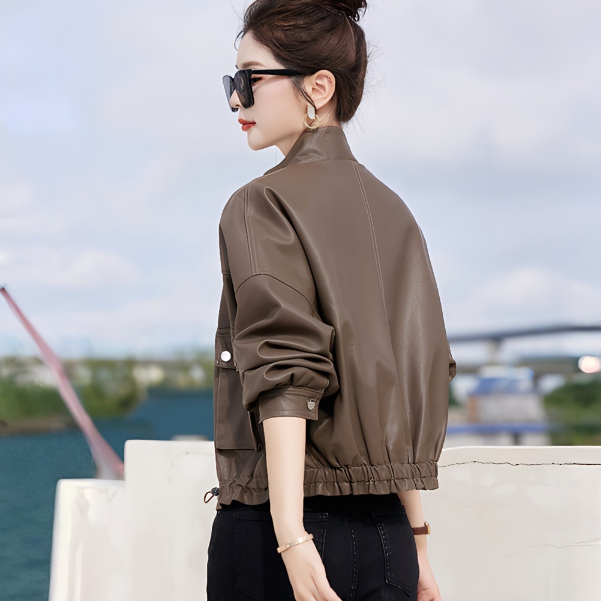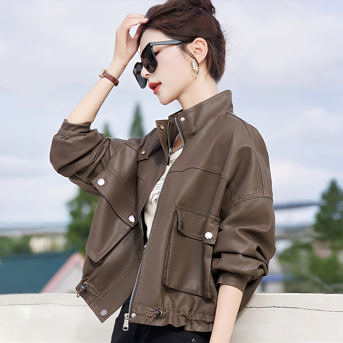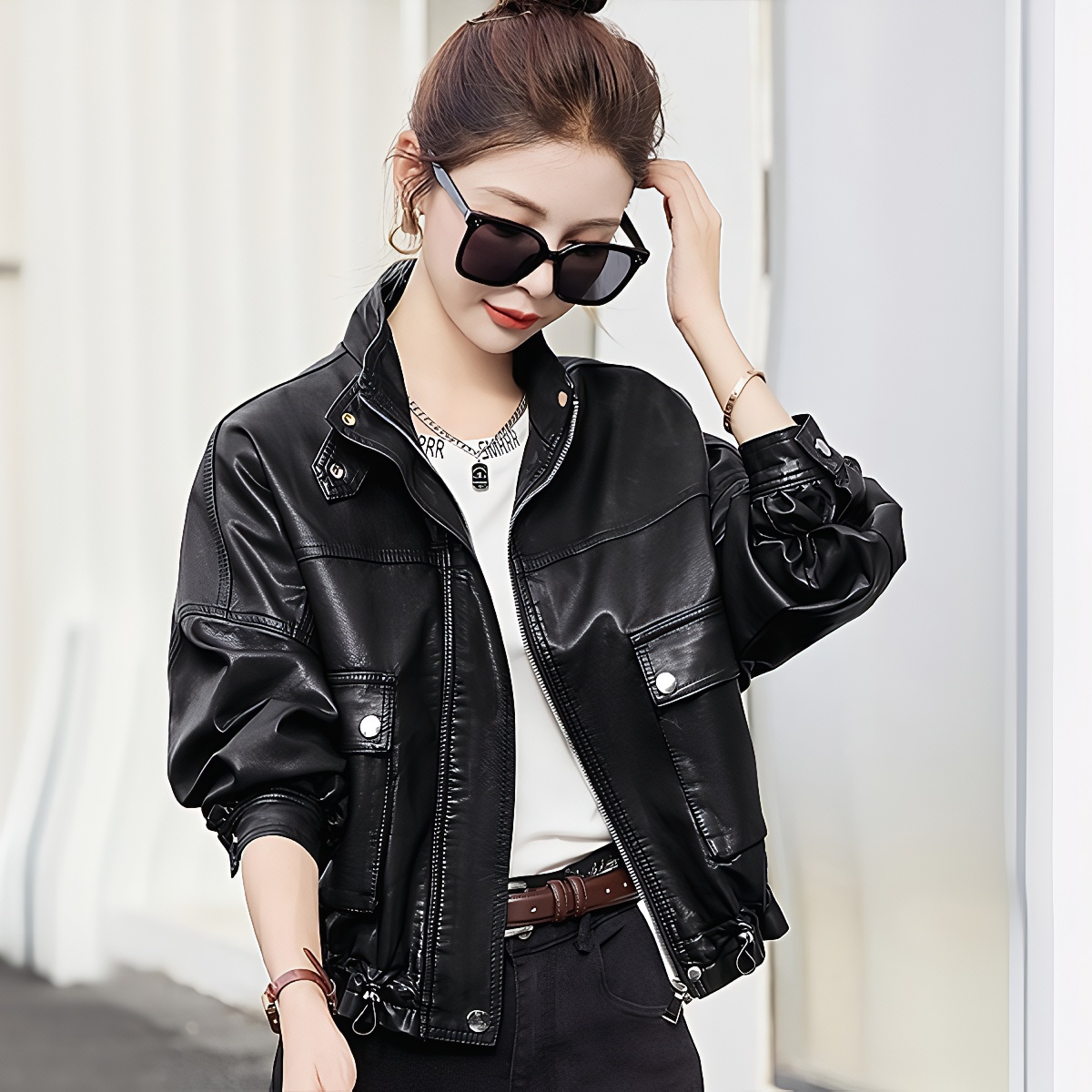 FA45357# pu皮衣外套女春秋装新新款高级感宽松短款机车皮夹克上衣潮 服裝批發女裝批發服飾貨源