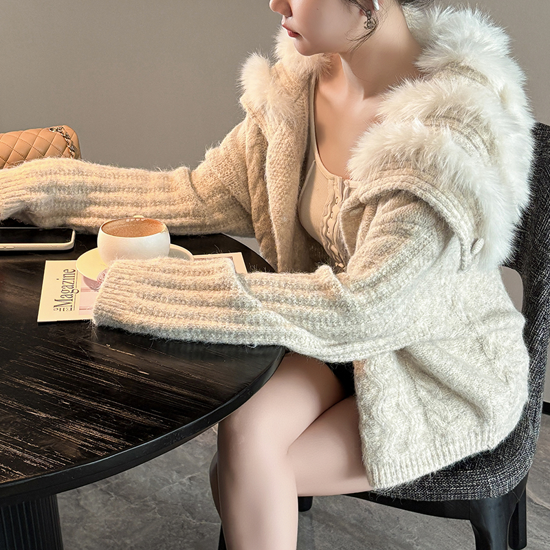 FA45372# 羊驼毛衣设计感海军领麻花软糯针织衫女开衫加厚毛领外套上衣 服裝批發女裝批發服飾貨源