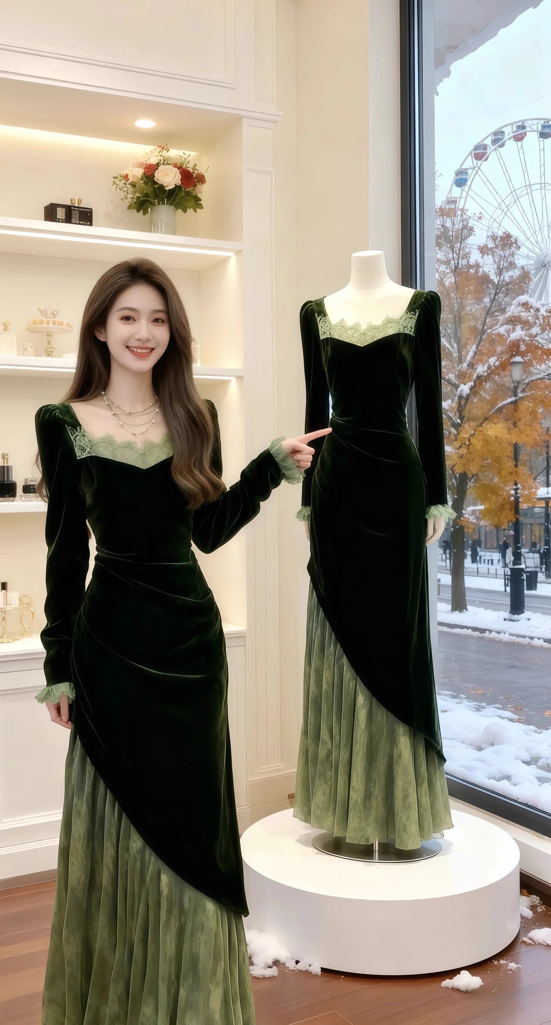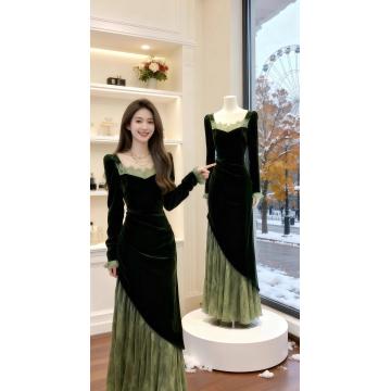 Home > 夜店裙、长袖连衣裙 > 法式名媛复古丝绒连衣裙蕾丝拼接高级感绝美宴会晚礼服裙冬季 服裝批發女裝批發服飾貨源