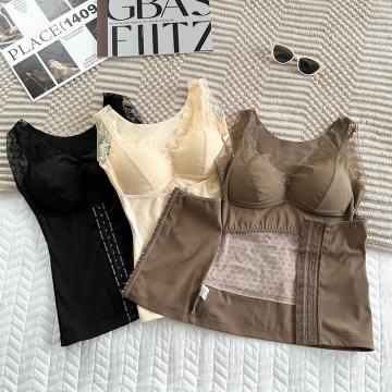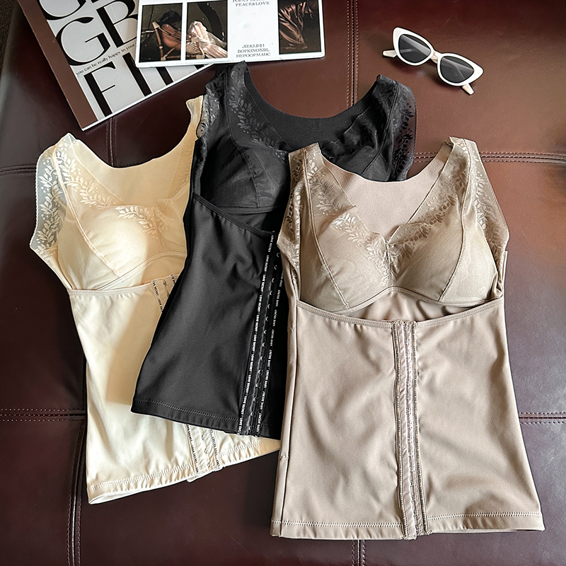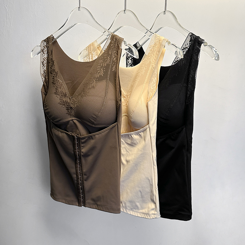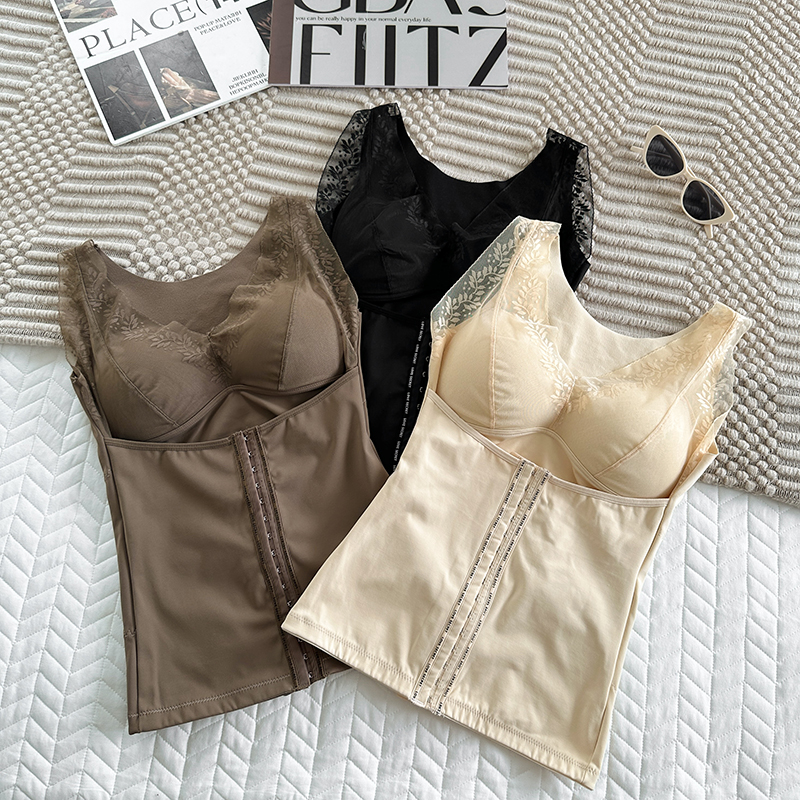 FA45236# 大码塑形束腰保暖内衣蚕丝陶瓷固定杯带排扣收腹打底蕾丝背心 服裝批發女裝批發服飾貨源