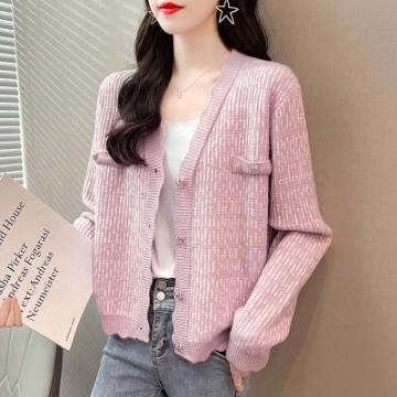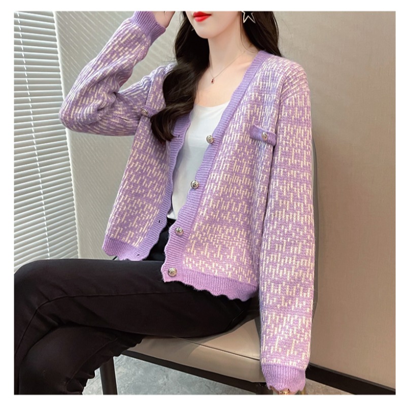 FA45414# 秋装新款韩版宽松格子开衫女长袖V领小香风针织衫外套毛衣女 服裝批發女裝批發服飾貨源