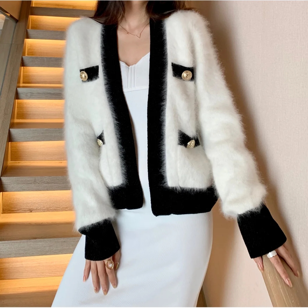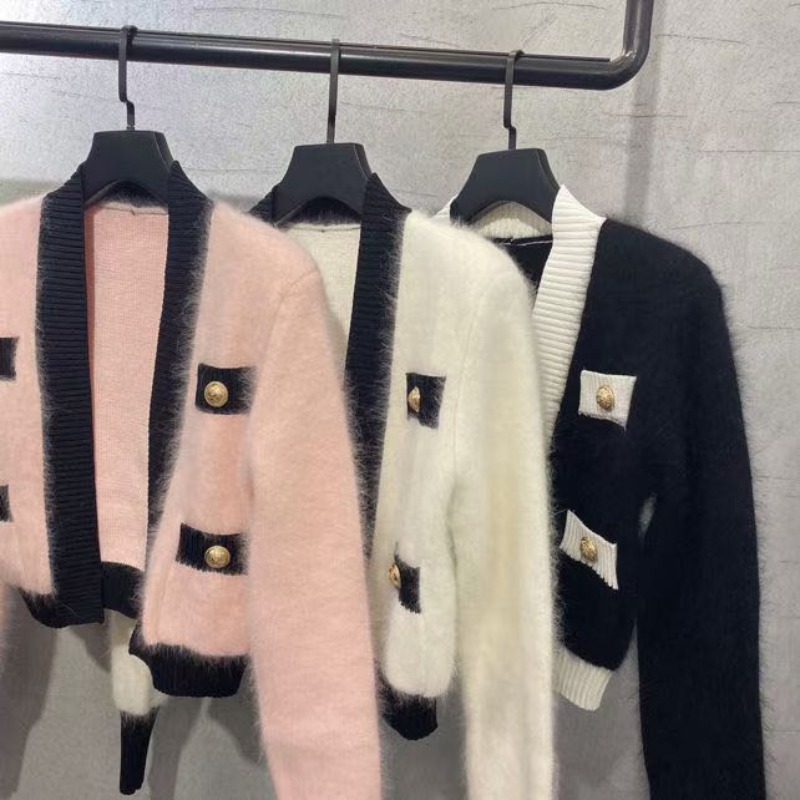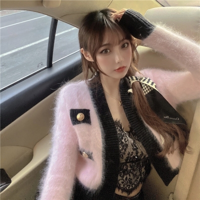 FA45415# 水貂绒外衣女秋冬新款小香风名媛短款貂毛衣针织开衫洋气外套 服裝批發女裝批發服飾貨源