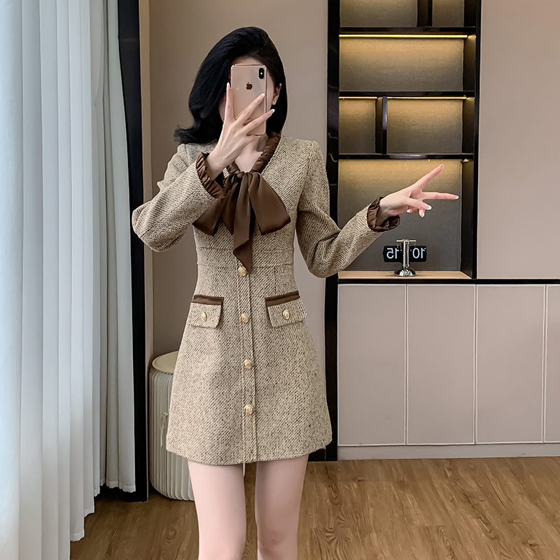高级感名媛茶歇收腰复古气质裙子御姐风法式千金小香风连衣裙 服裝批發女裝批發服飾貨源
