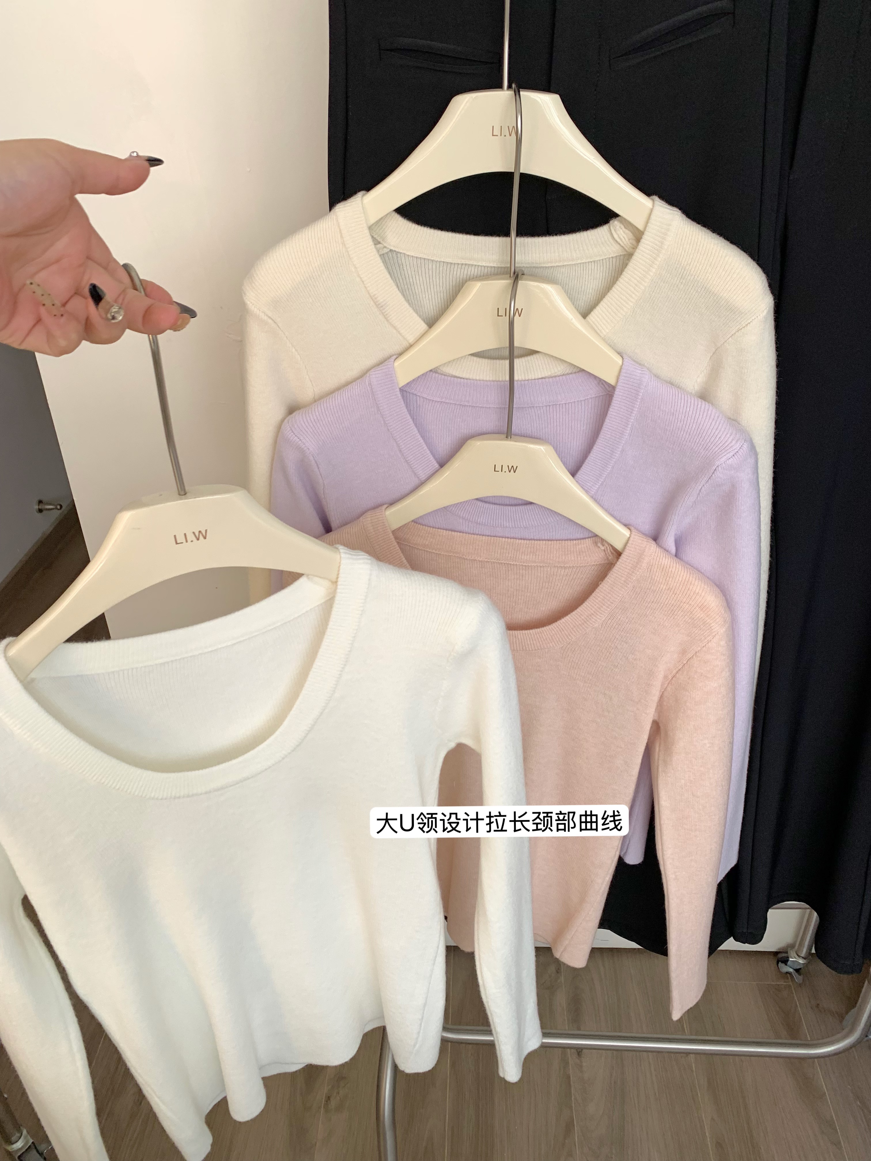 Home > 毛衣、针织衫 > FA45954# 韩系U领内搭长袖针织衫女春季气质时尚温柔设计感软糯上衣 服裝批發女裝批發服飾貨源