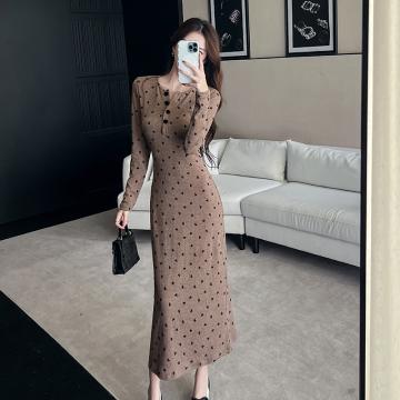 FA45966# 新款纽扣碎花长袖秋冬季蝴蝶结印花连衣裙长袖打底裙 服裝批發女裝批發服飾貨源