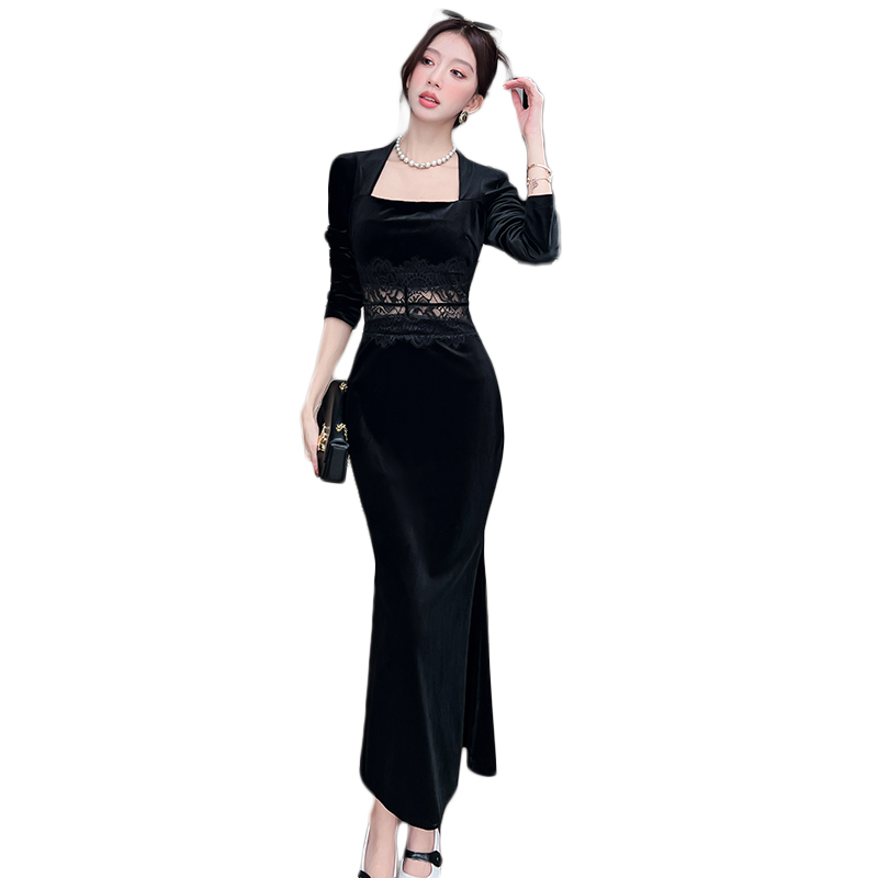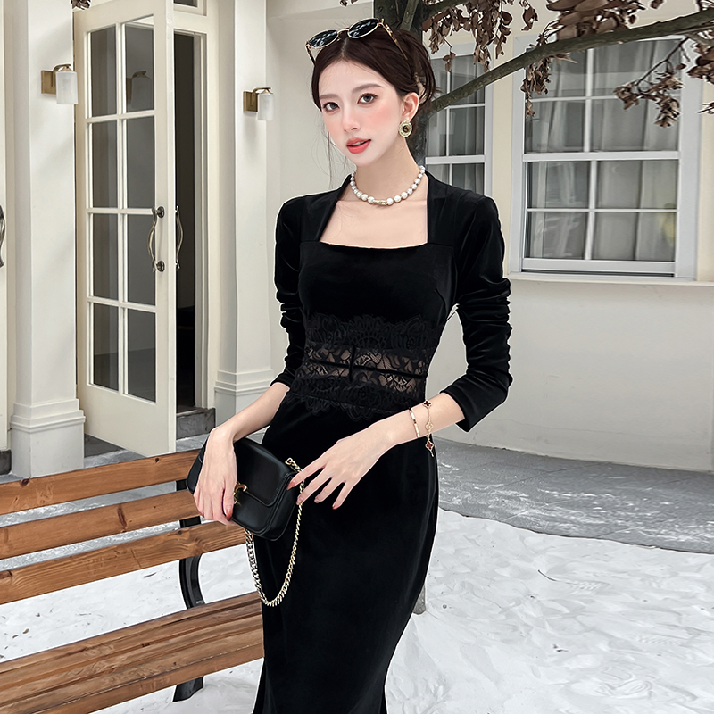 FA45970# 赫本法式蕾丝镂空设计气质修身收腰包臀连衣裙打底裙礼服裙 服裝批發女裝批發服飾貨源