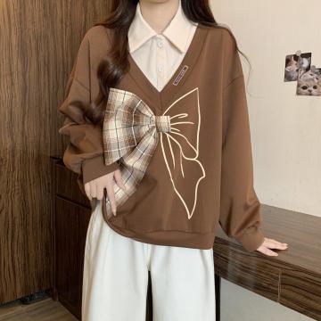 FA46420# 大码蝴蝶结设计感假两件式卫衣秋季慵懒宽松减龄chic外套 服裝批發女裝批發服飾貨源