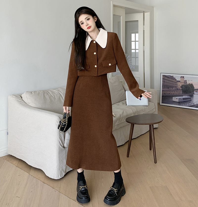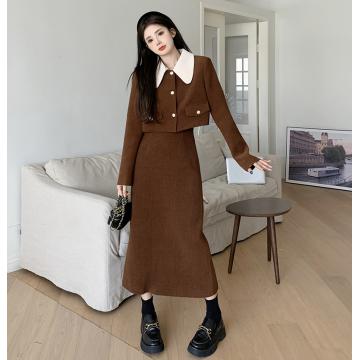 FA46449# 秋冬大码微胖妹妹MM气质名媛高级感上衣遮肉显瘦两件套装连衣裙 服裝批發女裝批發服飾貨源