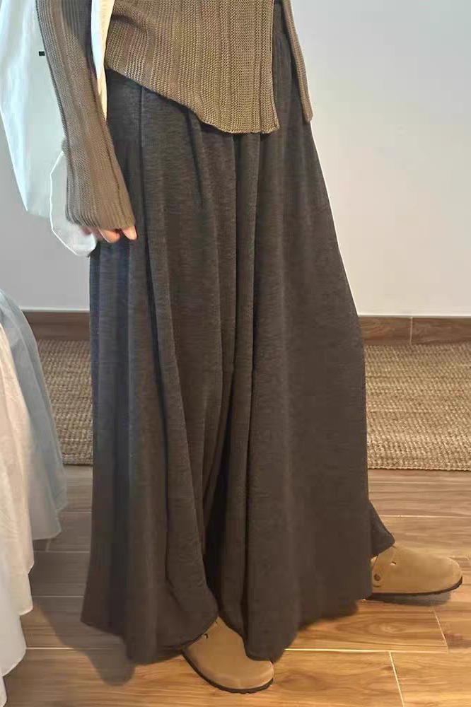 FA46788# 大码深灰色糯米裙裤女秋季梨型身材胖妹妹宽松显瘦垂感阔腿裤 服裝批發女裝批發服飾貨源