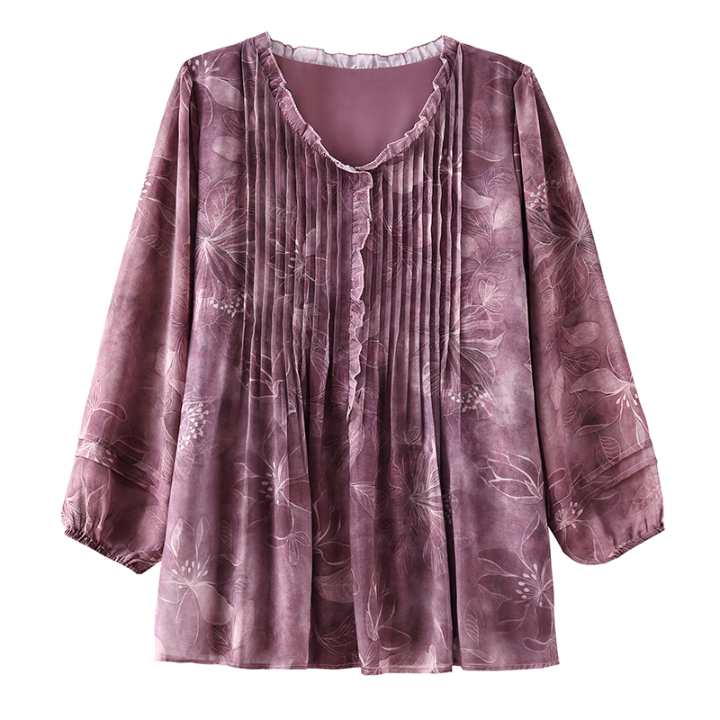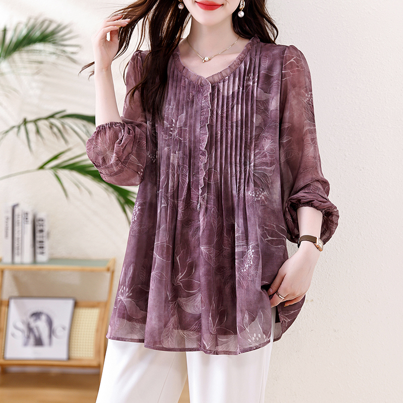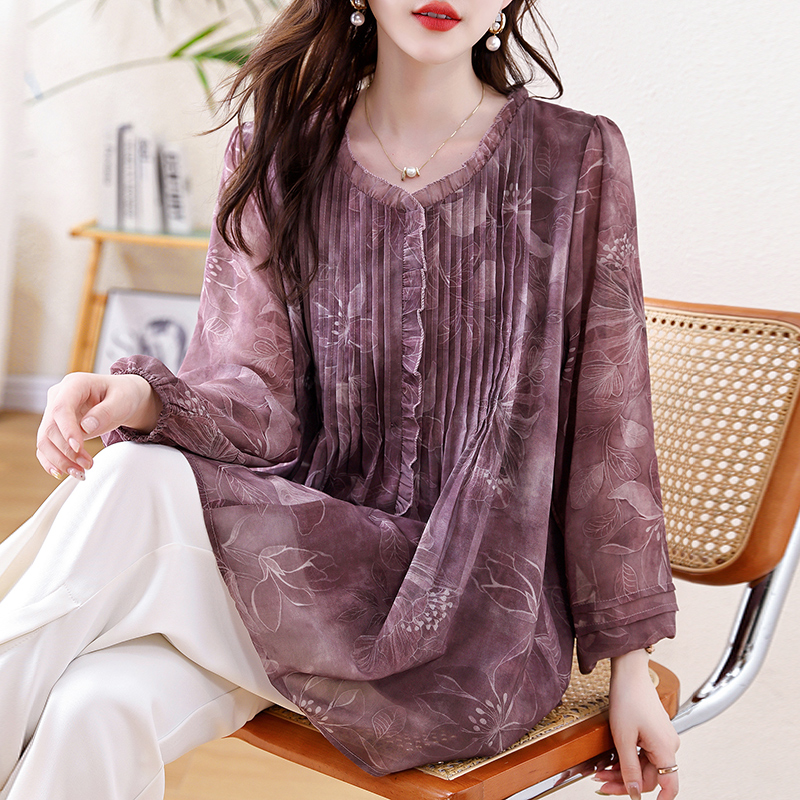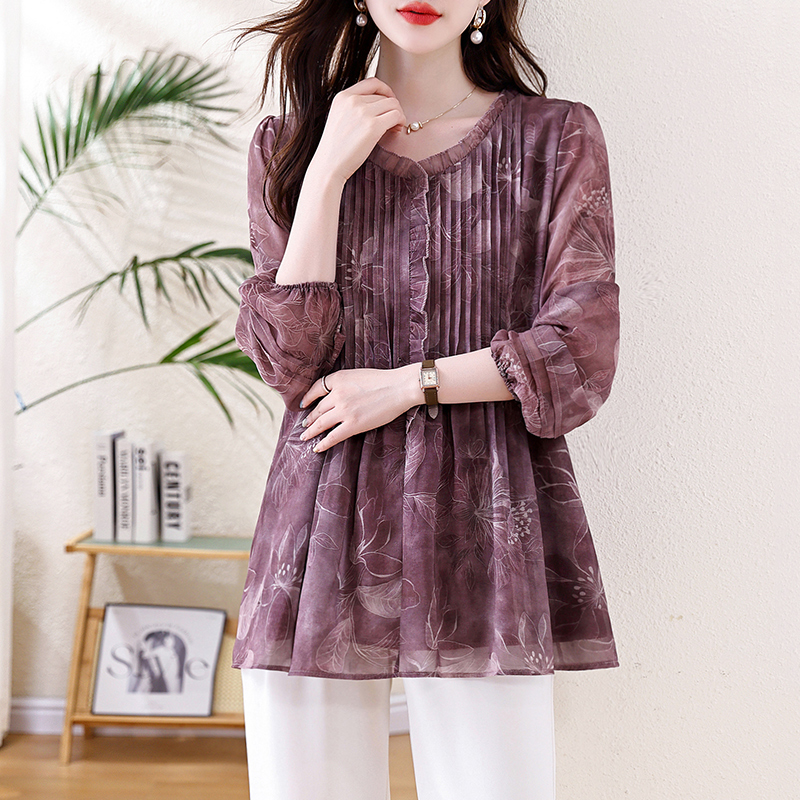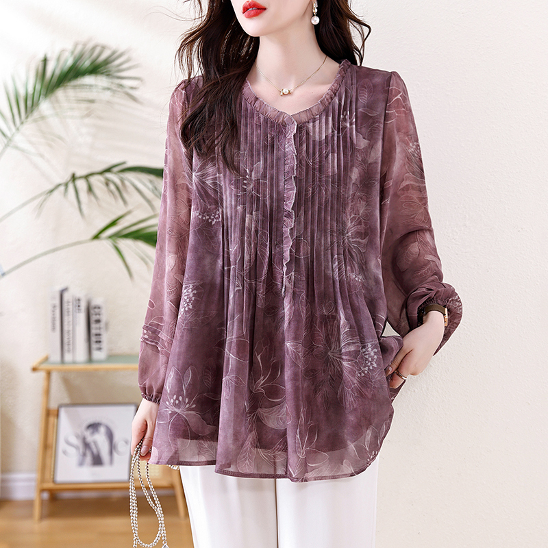 Home > 长袖雪纺衫、衬衫、上衣 > FA46804# 大码女装胖MM长袖压褶雪纺衫春秋新款宽松显瘦洋气百搭上衣 服裝批發女裝批發服飾貨源