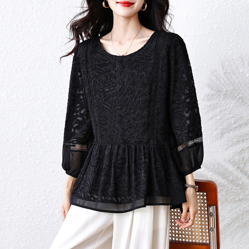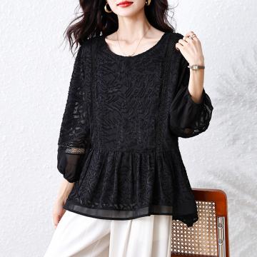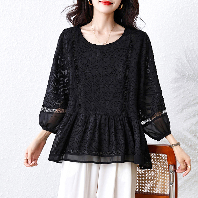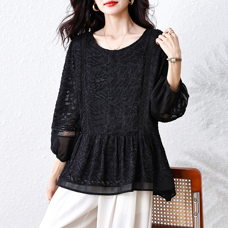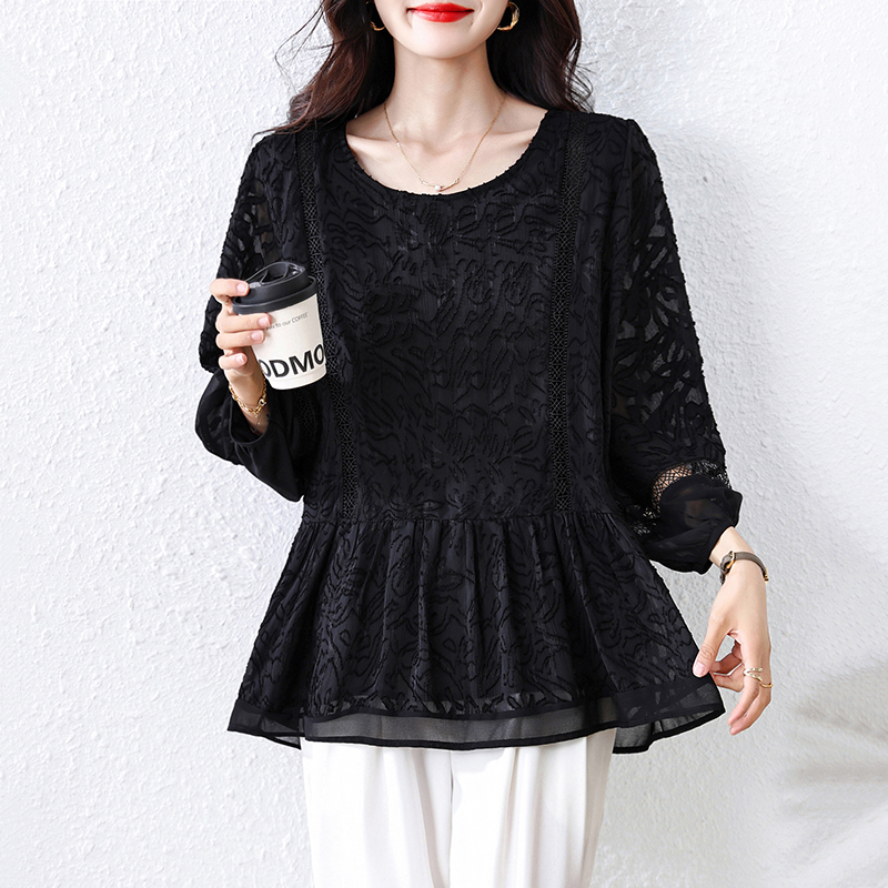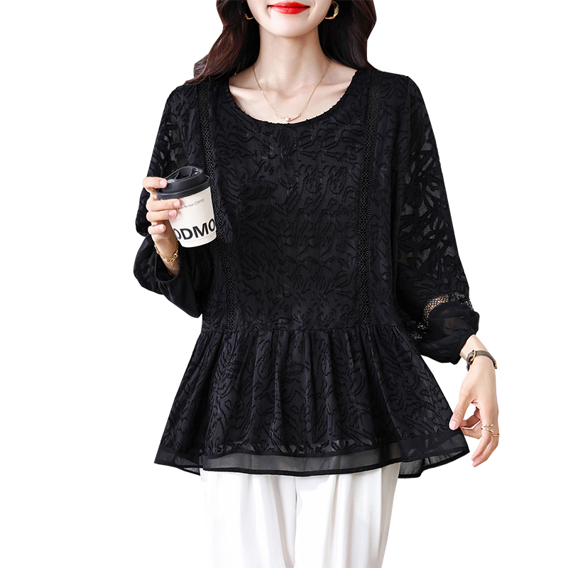 Home > 长袖雪纺衫、衬衫、上衣 > FA46806# 秋季新款大码女装蕾丝提花长袖时尚宽松显瘦遮肉气质减龄上衣 服裝批發女裝批發服飾貨源