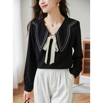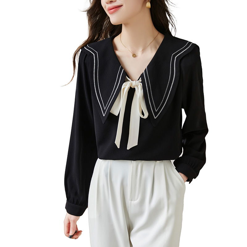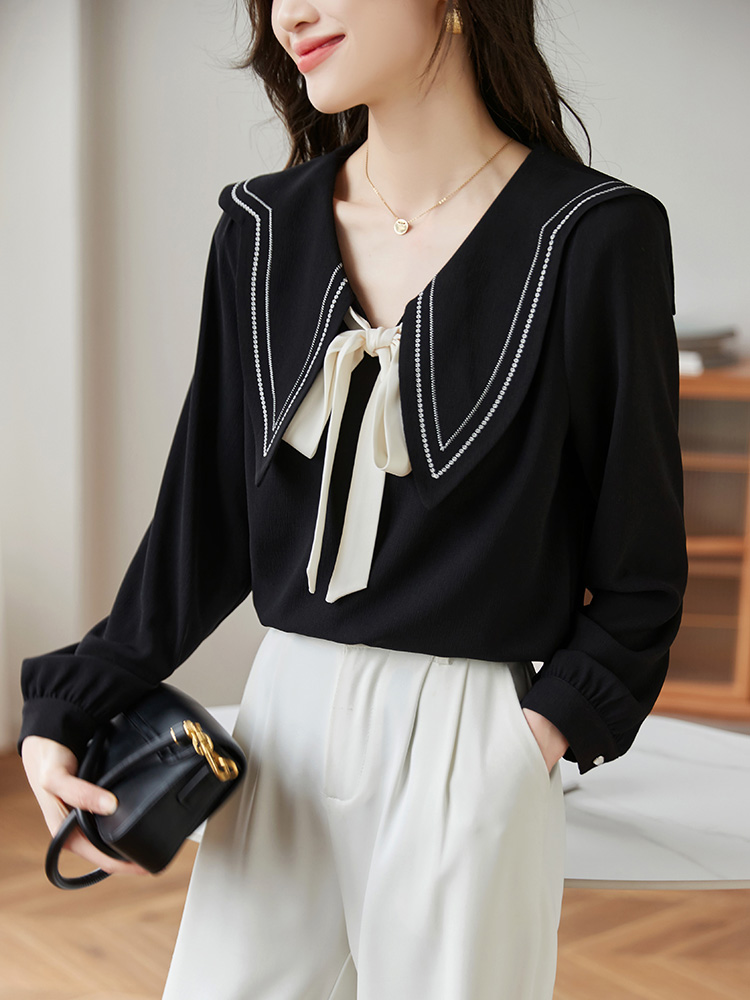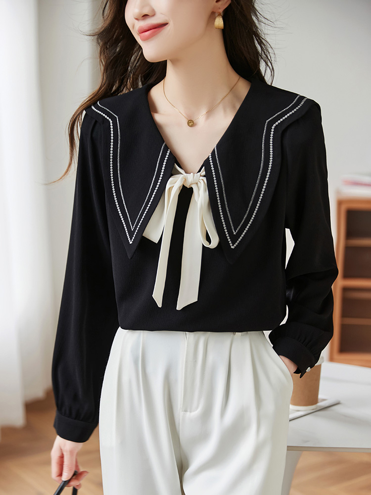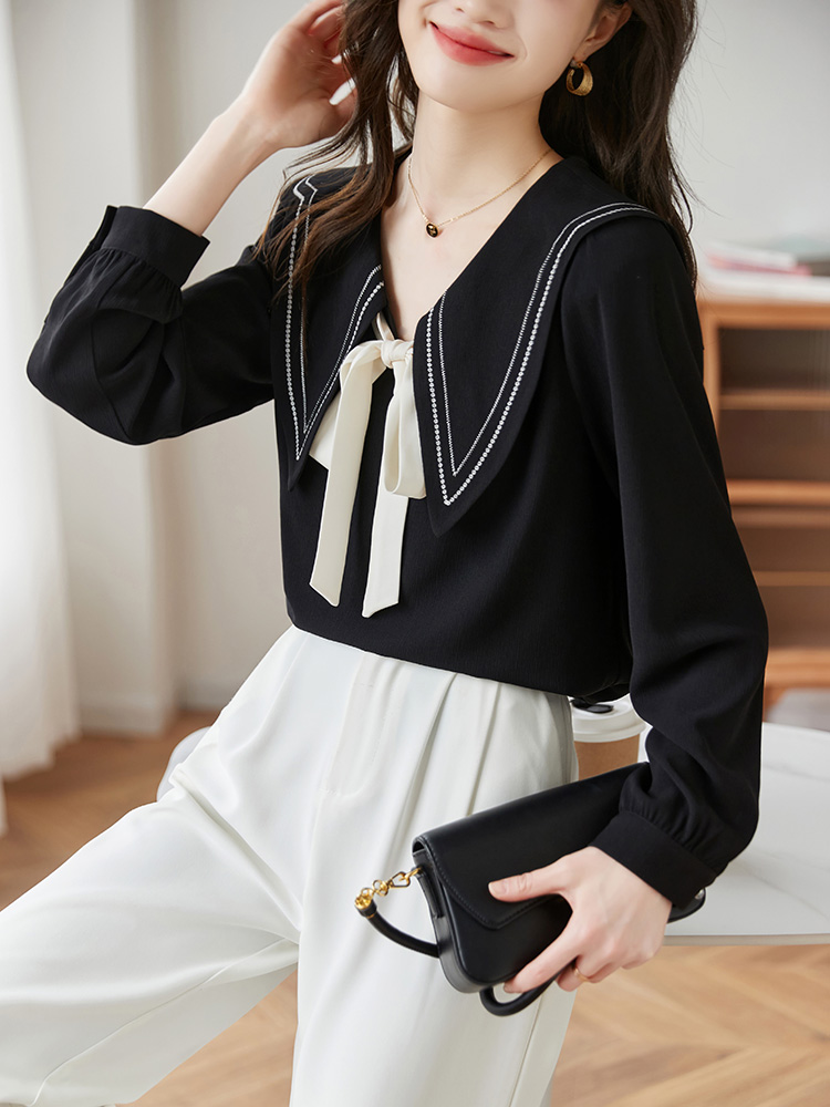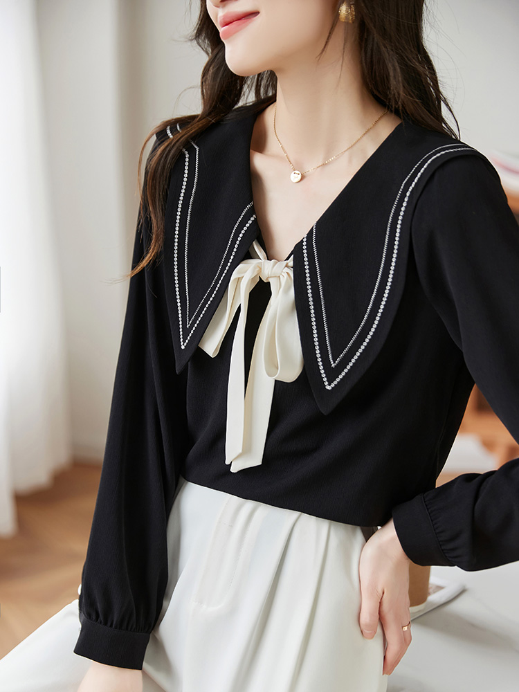 FA46833# 大码女装法式撞色气质V领小衫女秋季微胖MM梨型身材穿搭上衣 服裝批發女裝批發服飾貨源