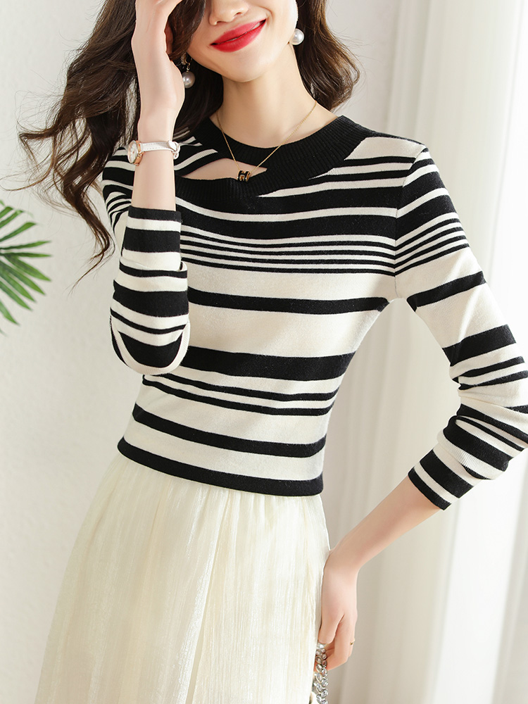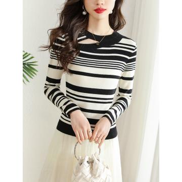 FA46834# 撞色条纹针织衫打底衫女秋季早秋装新款内搭上衣洋气显瘦小衫 服裝批發女裝批發服飾貨源