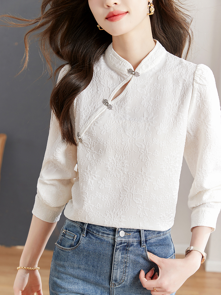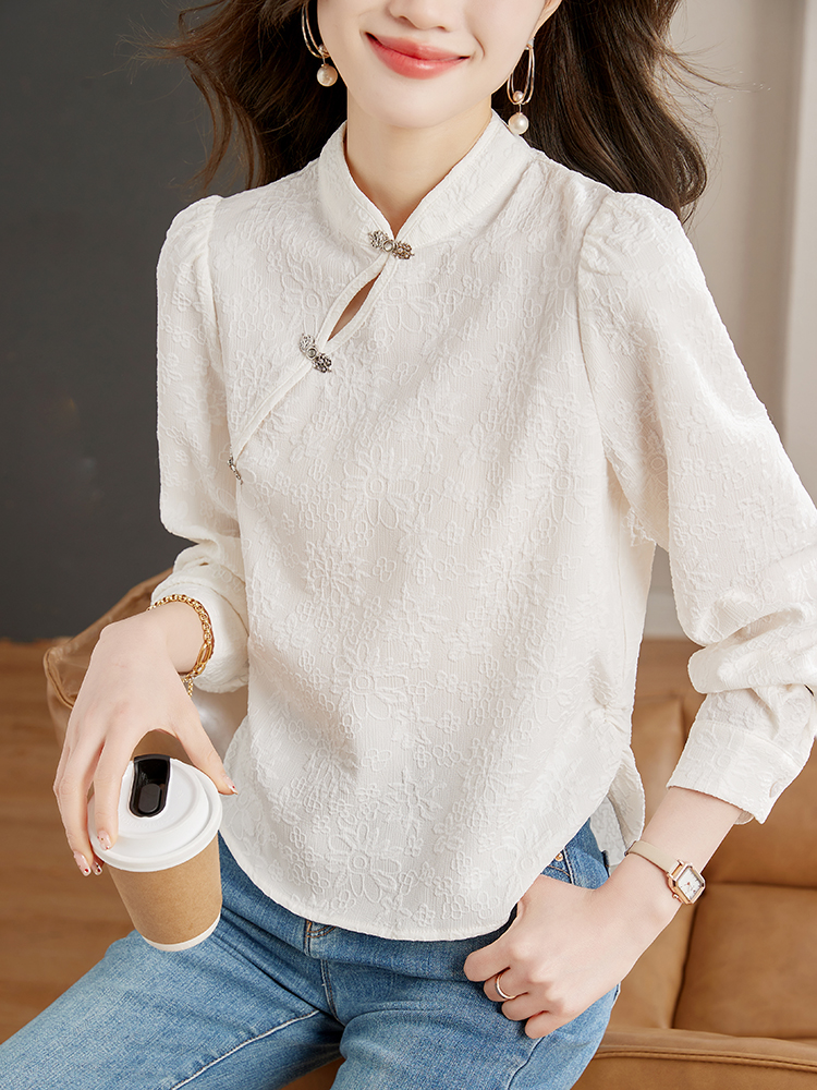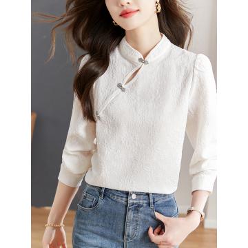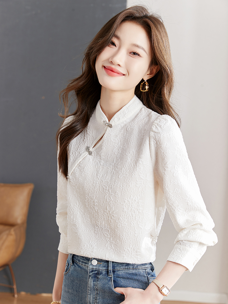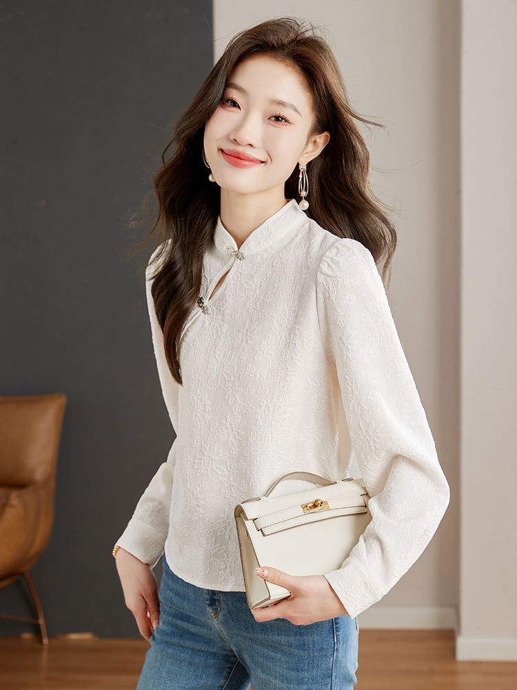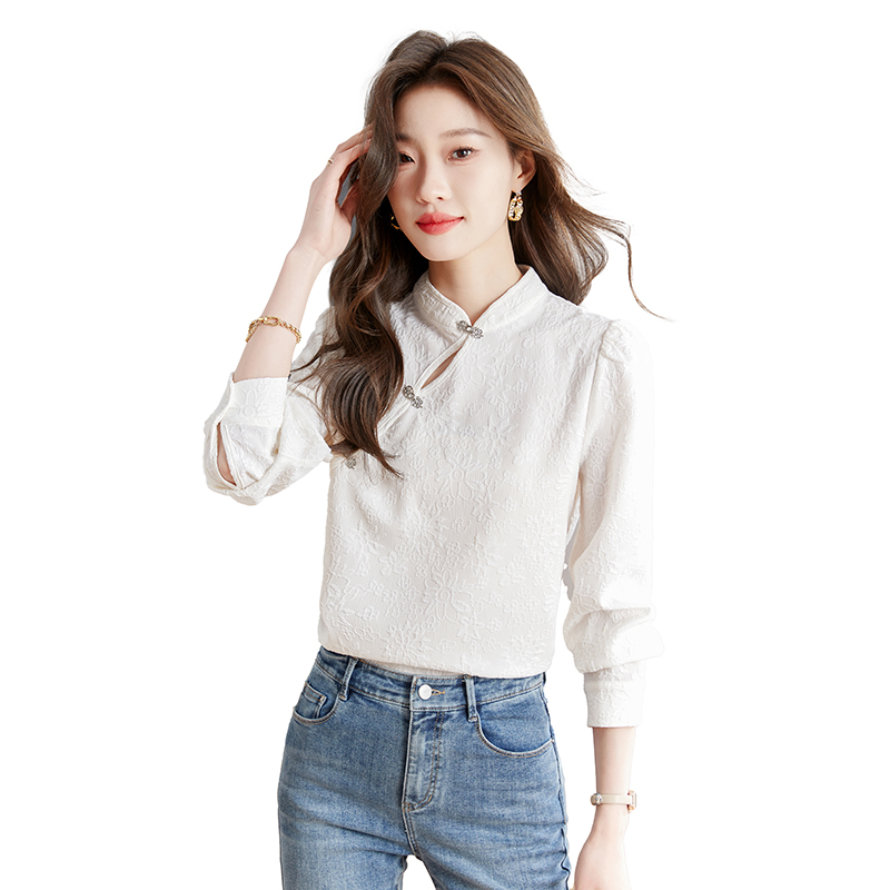 FA46836# 新中式长袖白衬衫女秋季新款刺绣设计复古高级感上衣 服裝批發女裝批發服飾貨源
