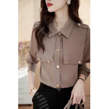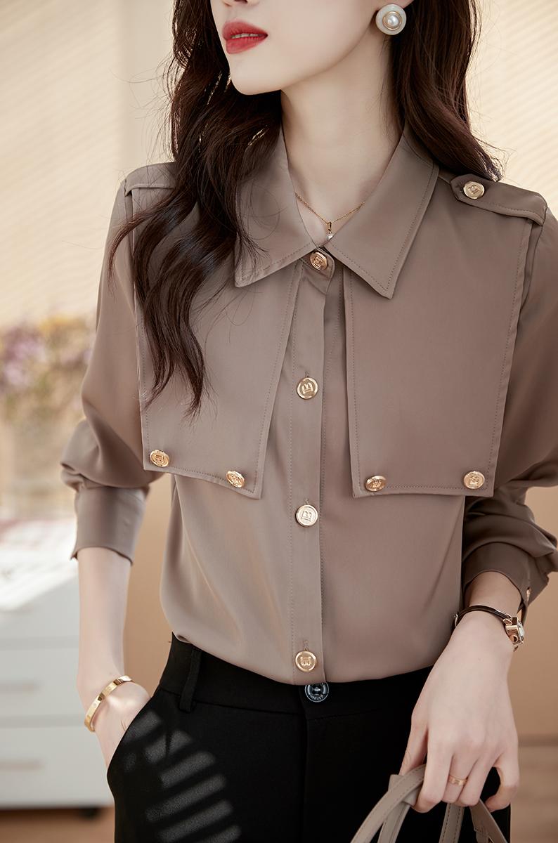 FA46844# 复古长袖衬衫女设计感小众秋装秋季新款上衣洋气百搭女士衬衣 服裝批發女裝批發服飾貨源