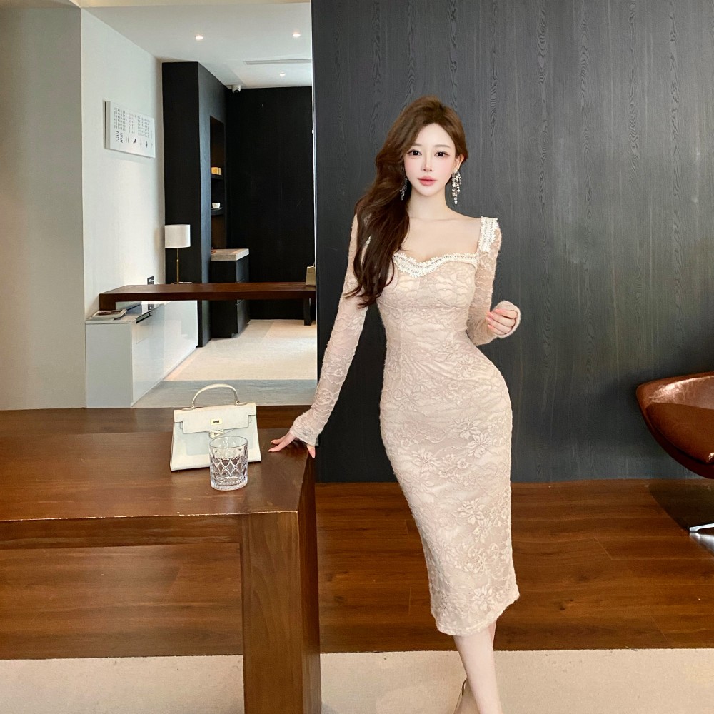 FA46859# 新款收腰法式包臀蕾丝气质性感纯欲风修身连衣裙 服裝批發女裝批發服飾貨源