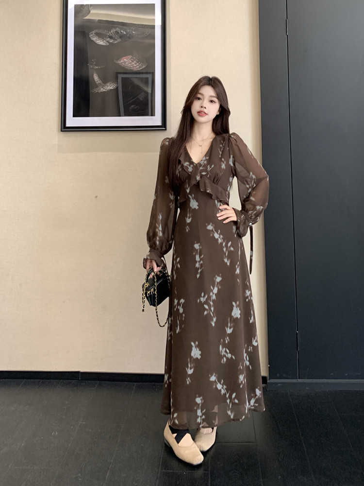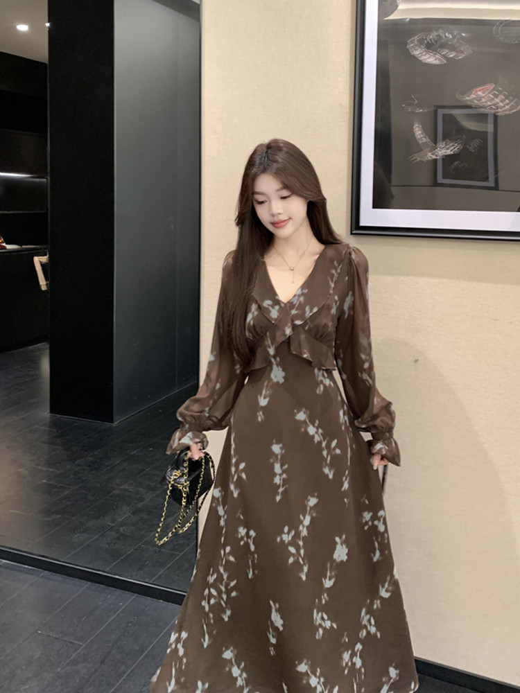 FA46863# 大码女装秋冬法式复古气质百搭连衣裙胖MM高级感收腰显瘦长裙 服裝批發女裝批發服飾貨源