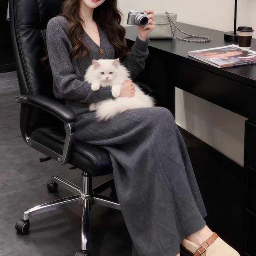 FA46741# 秋冬搭配一整套女新款高级感气质灰色针织开衫上衣半身裙套装 服裝批發女裝批發服飾貨源