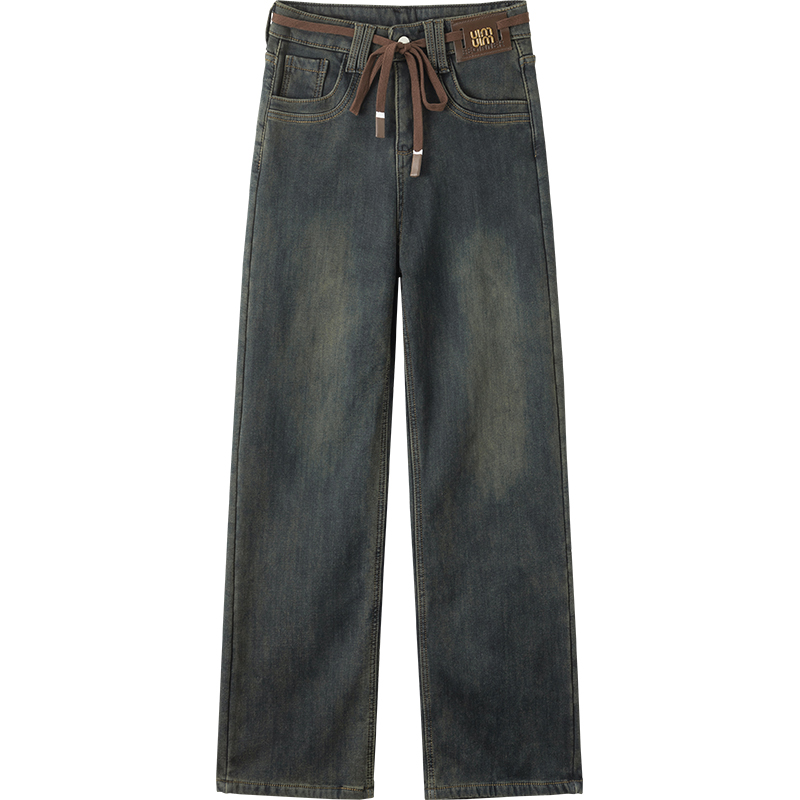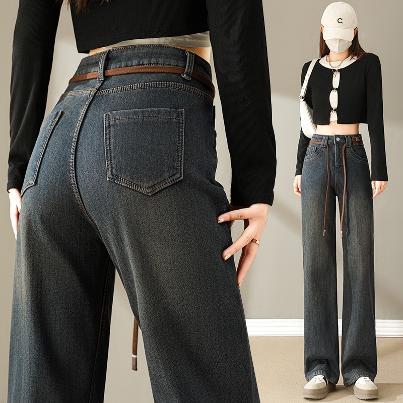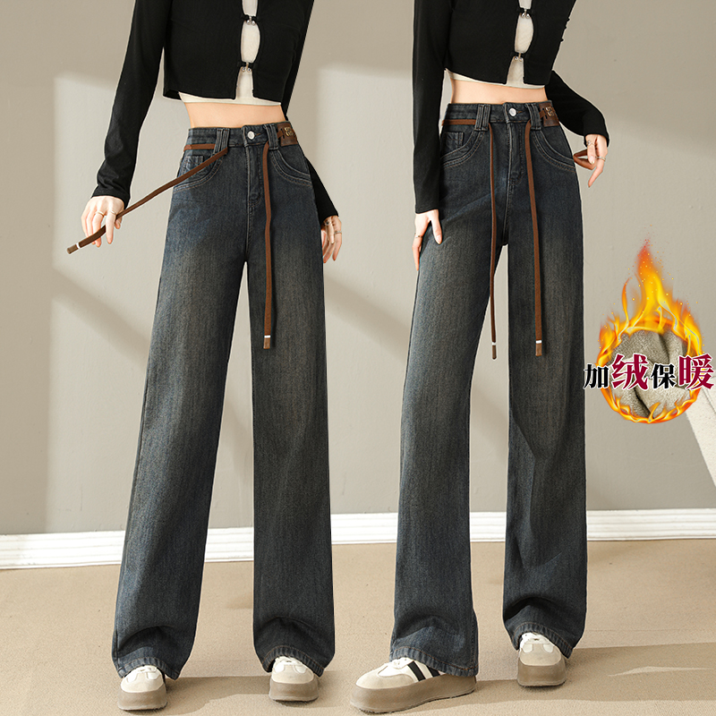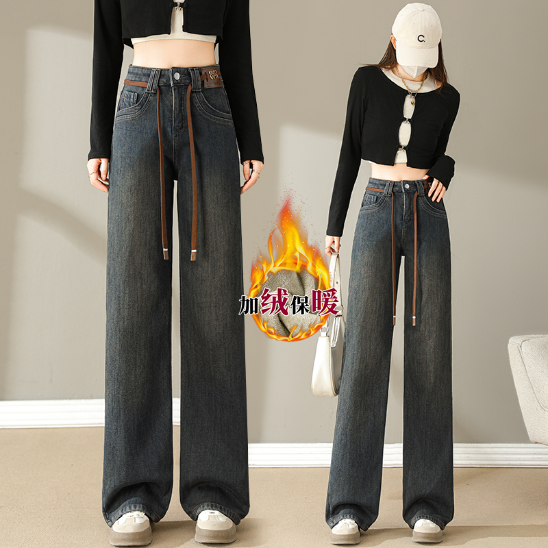 FA47127# 加绒保暖抽绳牛仔阔腿拖地裤女冬季韩版弹力垂感直筒长裤 服裝批發女裝批發服飾貨源