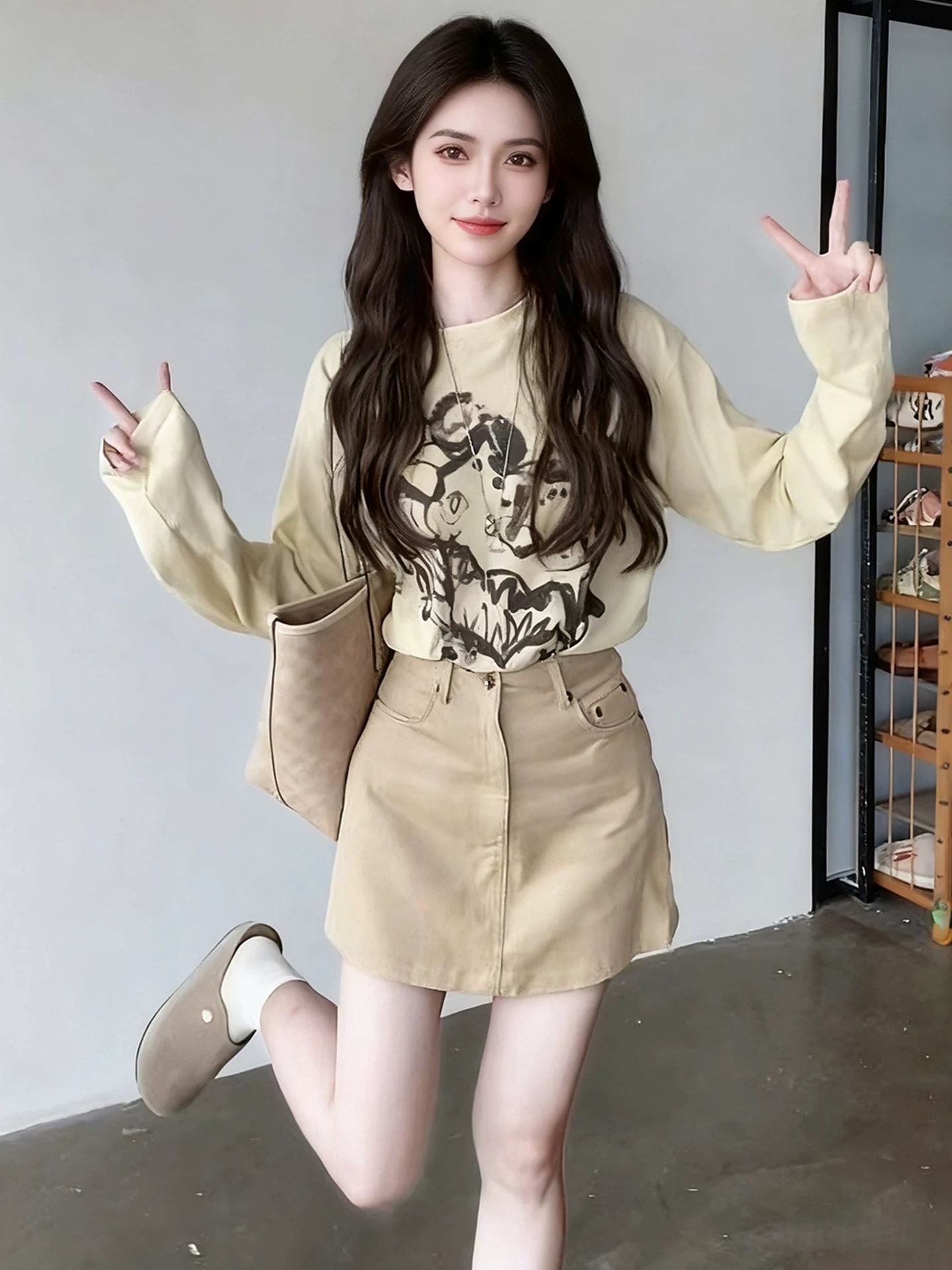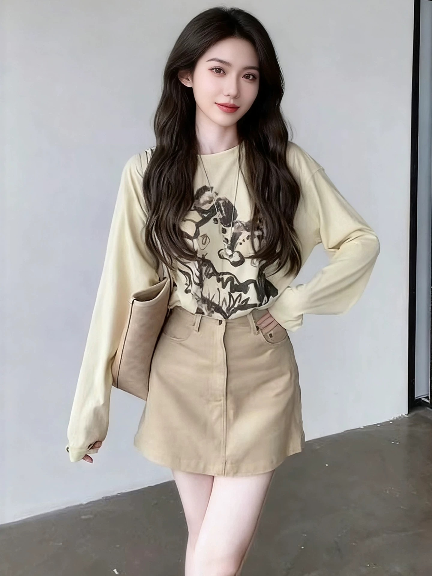 FA47163# 杏色连衣裙女秋季新款轻奢小众不撞款裙子御姐气质穿搭套装 服裝批發女裝批發服飾貨源