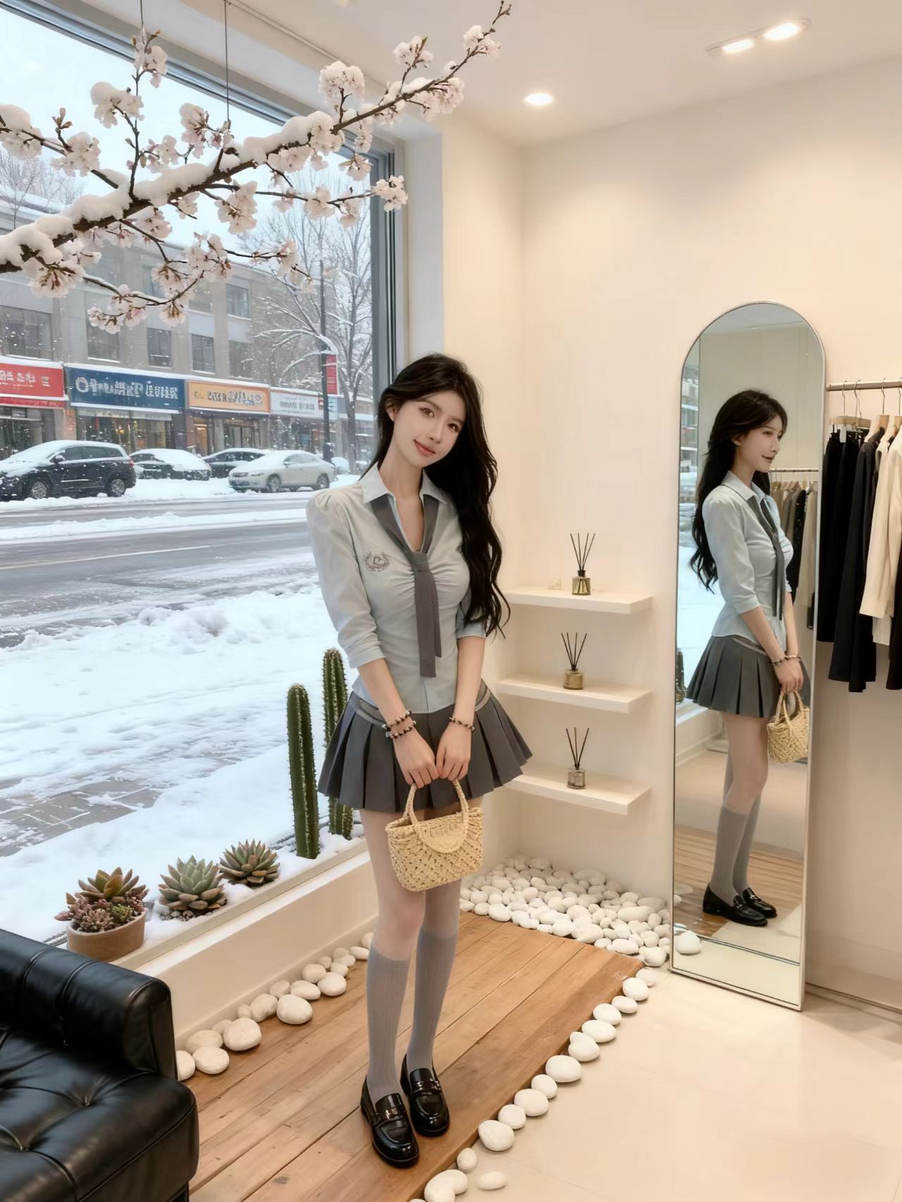 裙子西装面料 无弹力 配有安全裤 前短后长 侧边拉链