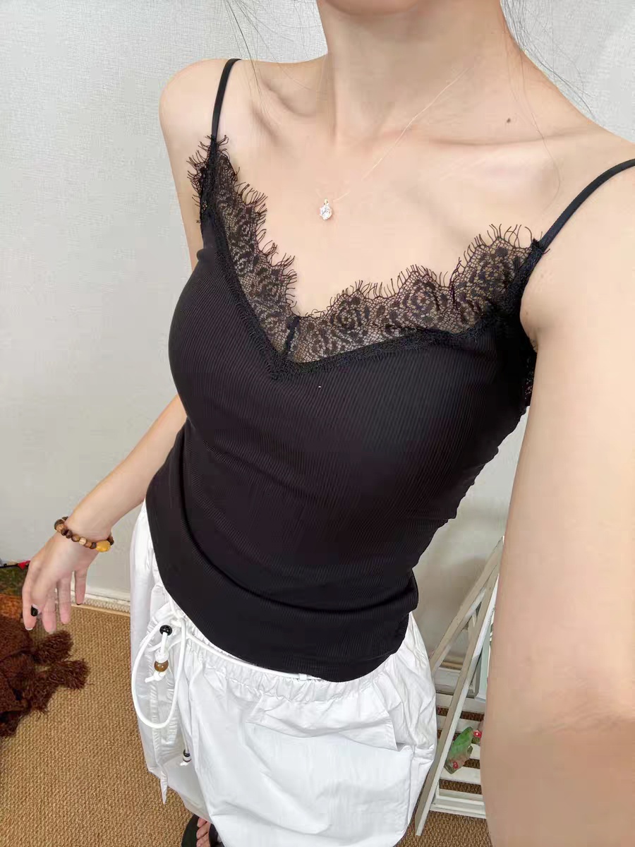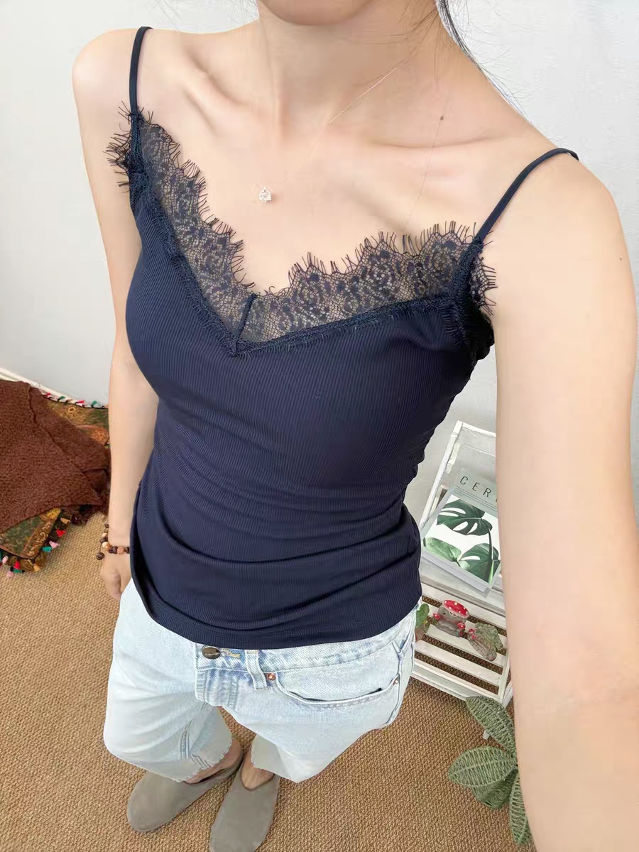 FA47264# 蕾丝V领吊带背心春夏季新款修身外穿内搭打底无袖上衣 服裝批發女裝批發服飾貨源