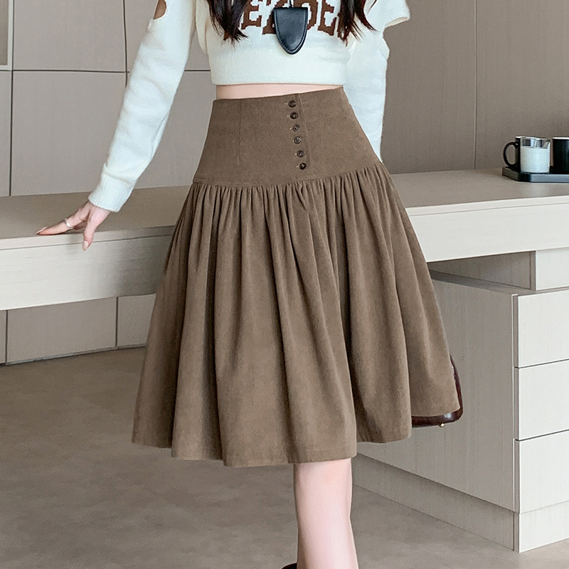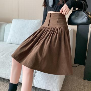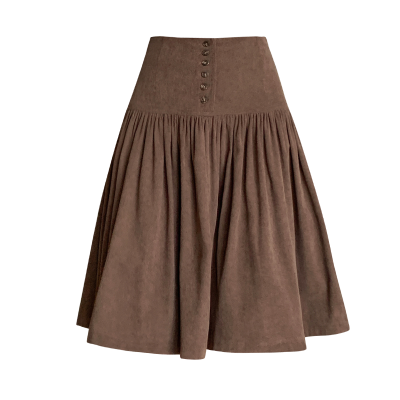 FA47293# 韩系复古学院风纽扣设计拼接高腰显瘦春秋百搭中裙A字裙半身裙 服裝批發女裝批發服飾貨源