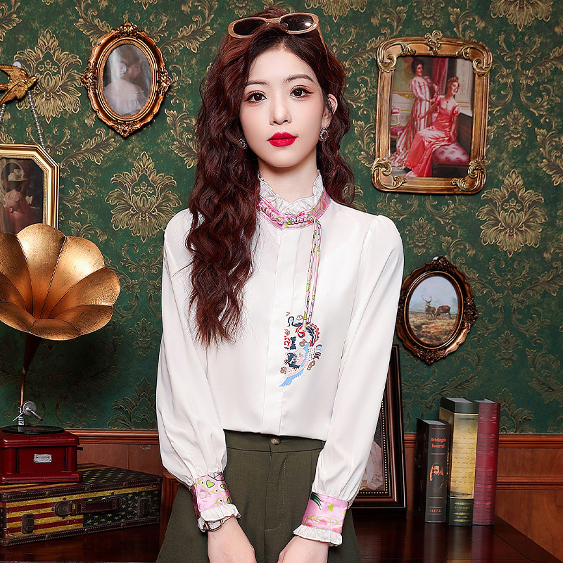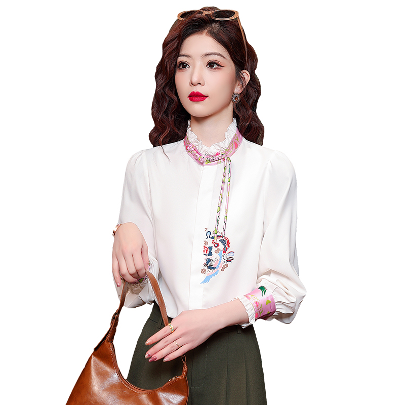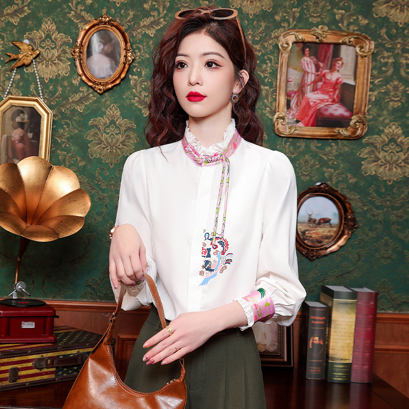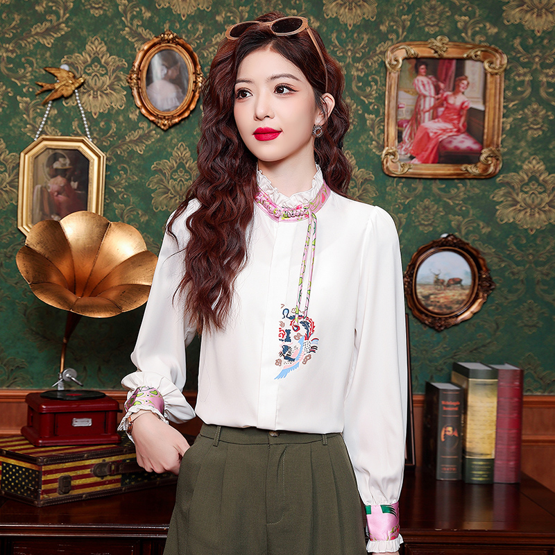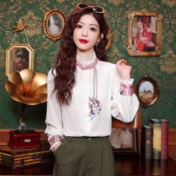 FA47322# 新款印花衬衣女OL上衣 服裝批發女裝批發服飾貨源