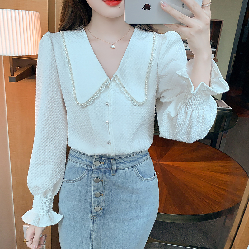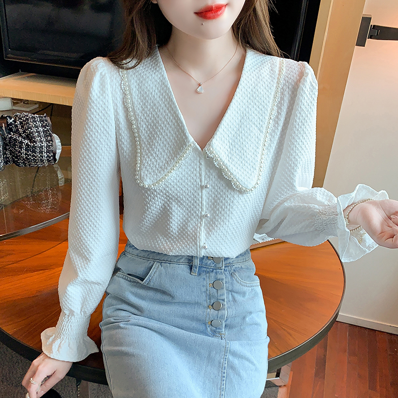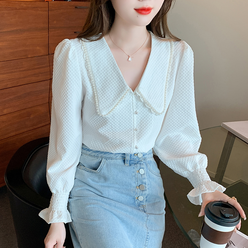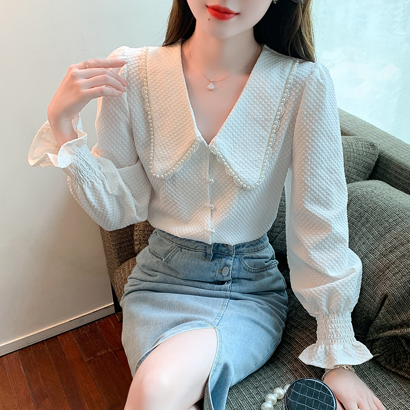 FA47327# 秋款高级长袖上衣女春秋装新款洋气百搭女士衬衣 服裝批發女裝批發服飾貨源