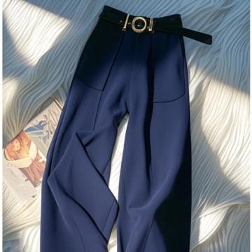 FA47347# 新款爆款小个子高级感超好看宽松慵懒风藏青色蕾丝拼接阔腿裤 服裝批發女裝批發服飾貨源