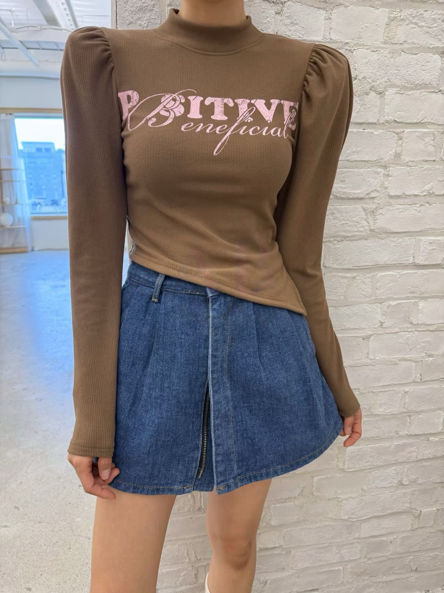 FA47402# 韩国东大门秋冬新款百搭时尚字母印花高领打底T恤 服裝批發女裝批發服飾貨源