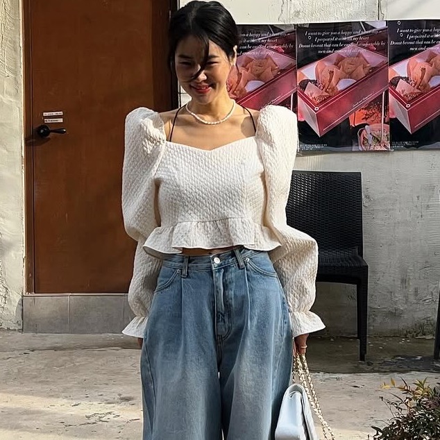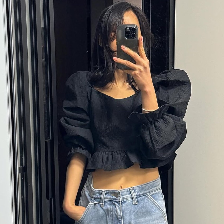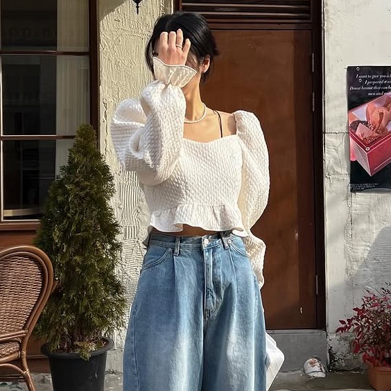 FA47404# 韩国chic法式复古泡泡袖方领衬衫女高级设计感别致上衣 服裝批發女裝批發服飾貨源