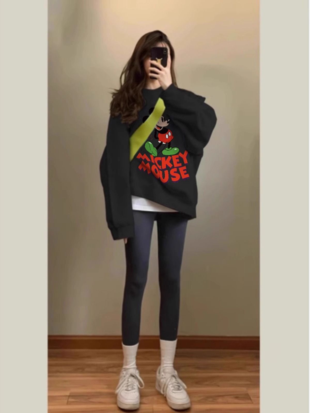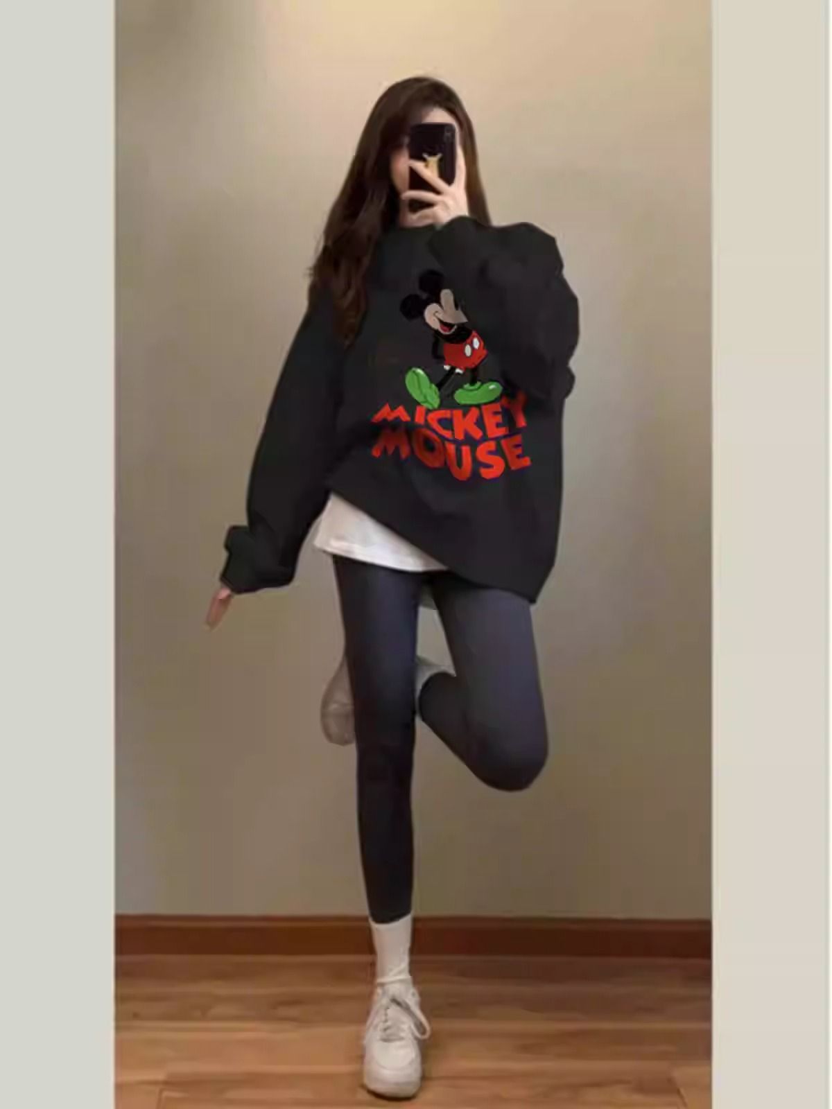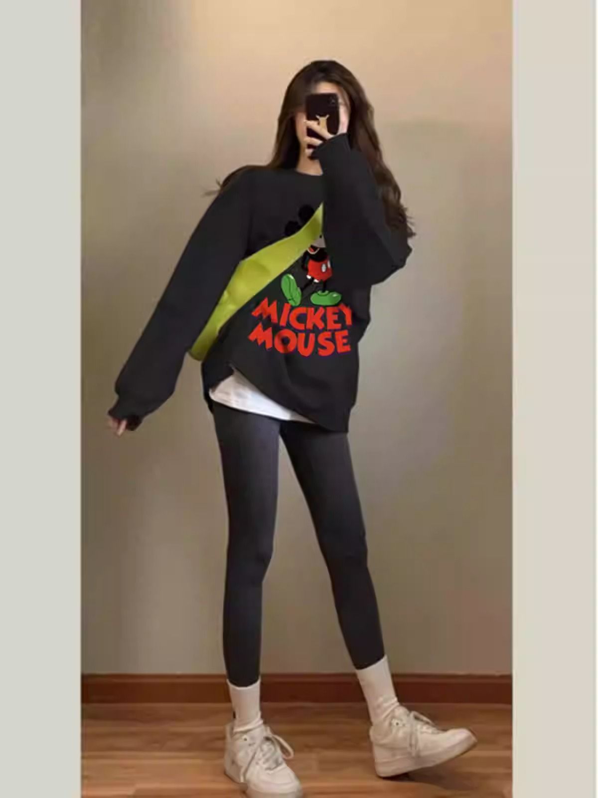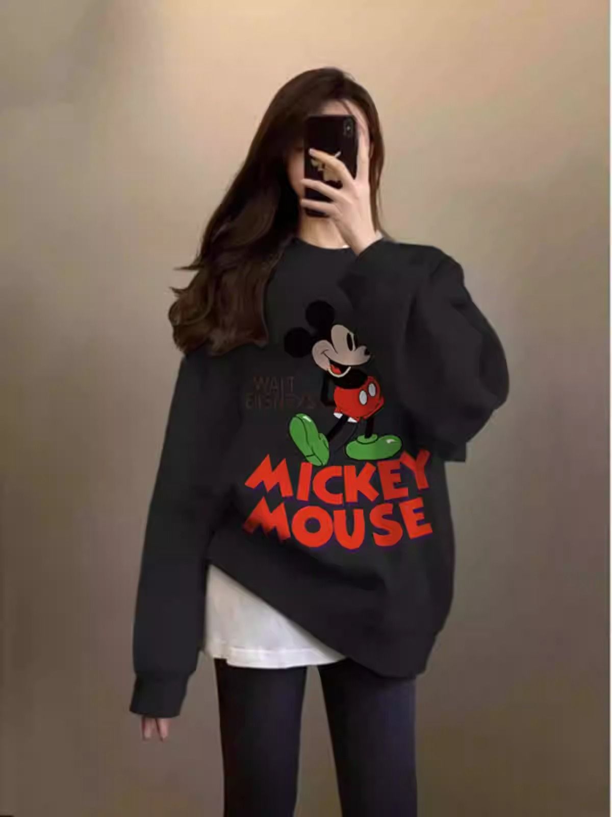 FA48419# 可爱米老鼠卡通加绒加厚卫衣女秋冬季韩版宽松休闲小个子显瘦上衣 服裝批發女裝批發服飾貨源