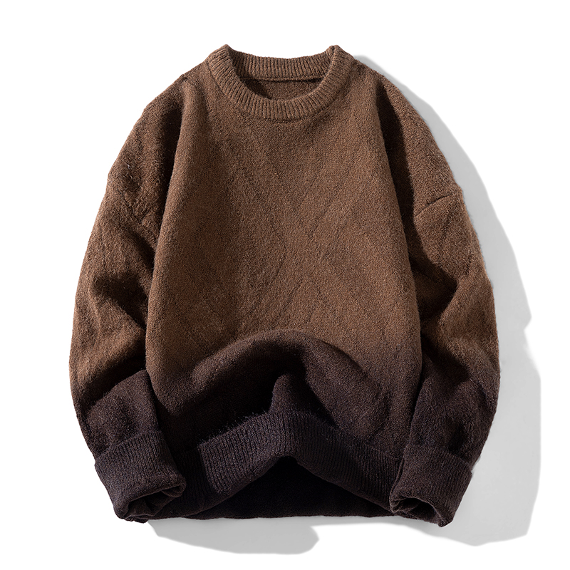 年毛衣男气质渐变色长袖针织打底衫秋冬季复古毛衣上衣新款浅花纹卫衣男 男装批发