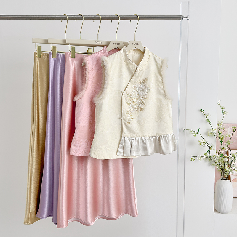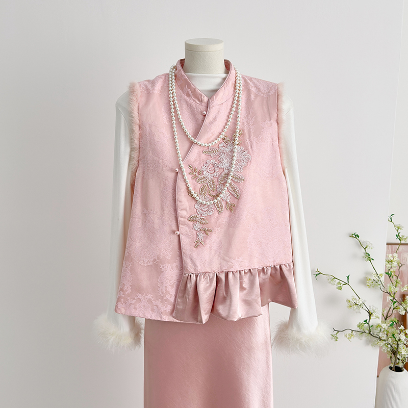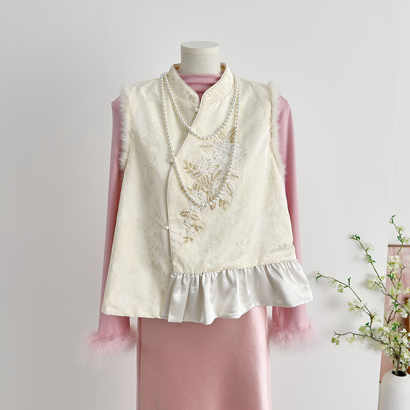 Home > 韩版套装 > FA49237# 新中式重工刺绣亮片串珠拼接水貂毛马甲秋冬新款国风加棉马夹 服裝批發女裝批發服飾貨源