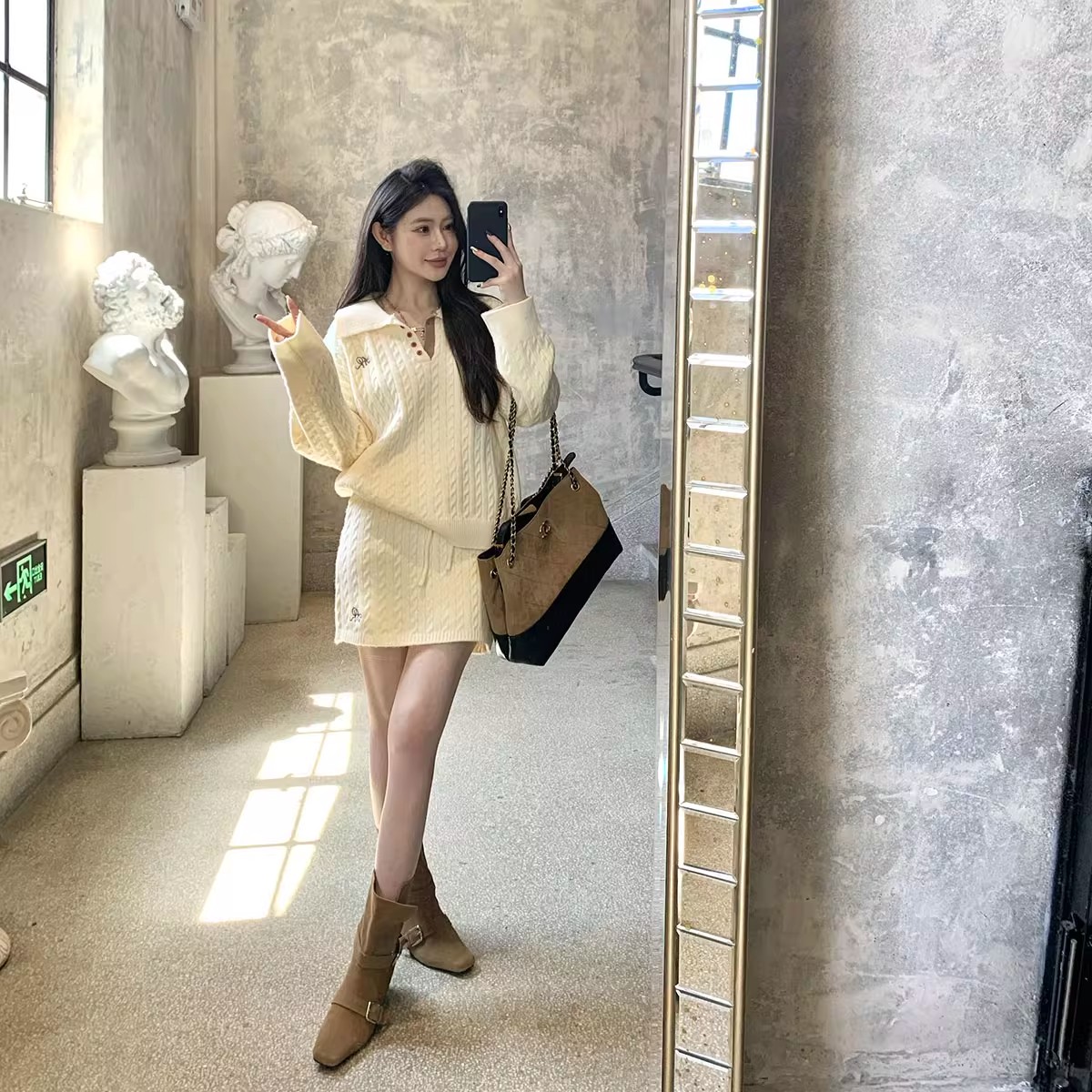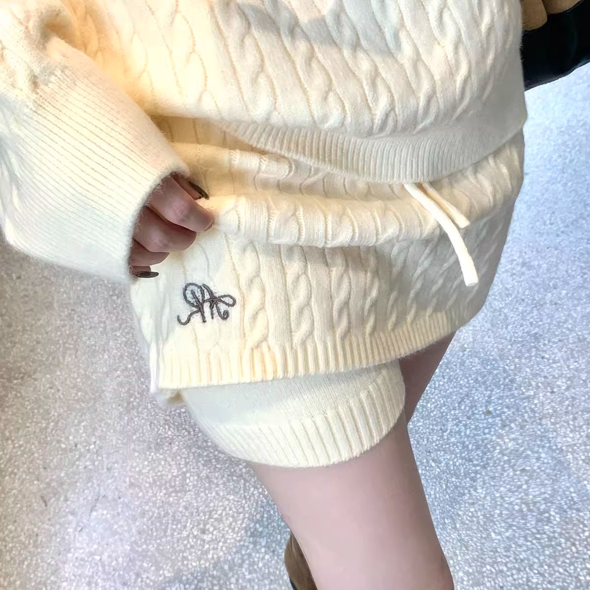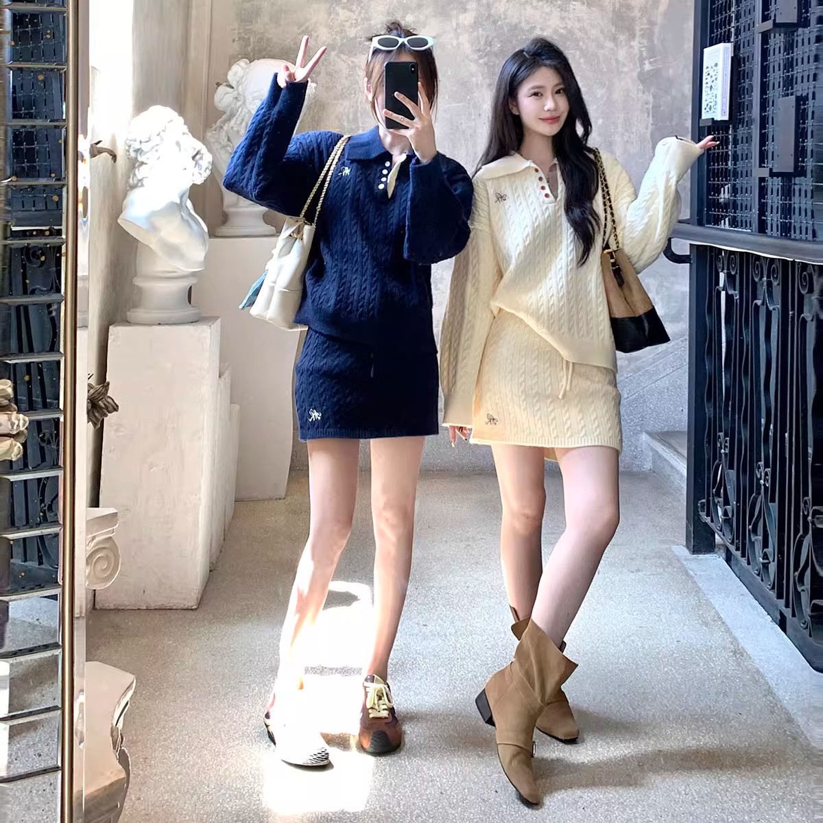 FA49261# 新款慵懒风针织套装polo领麻花纹毛衣+短裙两件套女 服裝批發女裝批發服飾貨源