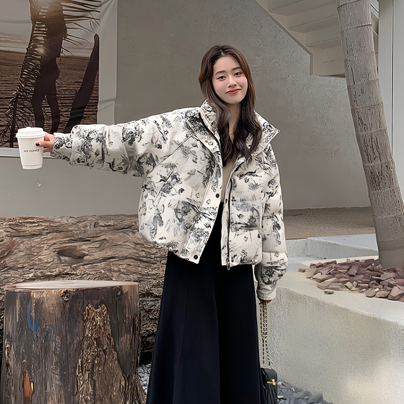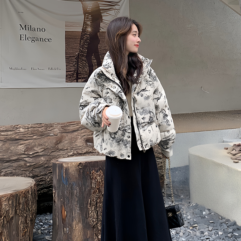 FA49262# 羽绒棉服女冬新款小个子小香风短款棉衣时尚提花加厚国风外套 服裝批發女裝批發服飾貨源